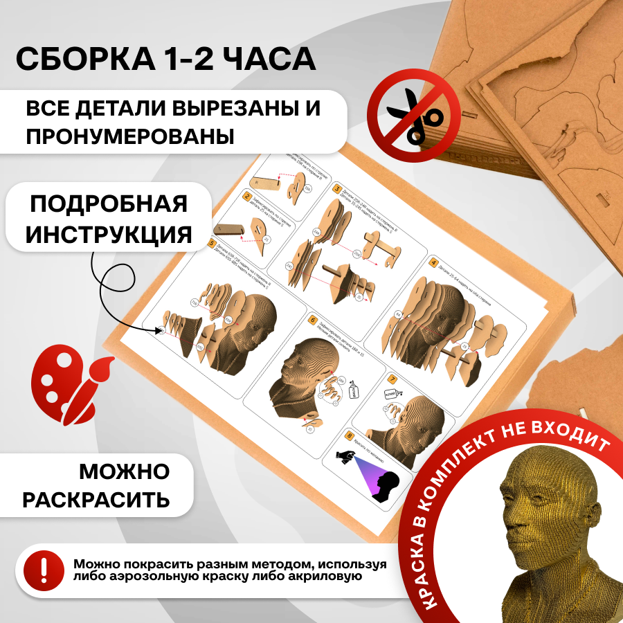 Это оригинальные 3D конструкторы (сборные модели). Каждый комплект изготовлен из пищевого гофрокартона - нетоксичного, экологически чистого материала, пригодного для повторного использования. А каждая деталь вырезана и прономерована при помощи высокоточной лазерной резки. Конструктор легко собрать по прилагаемой инструкции.
