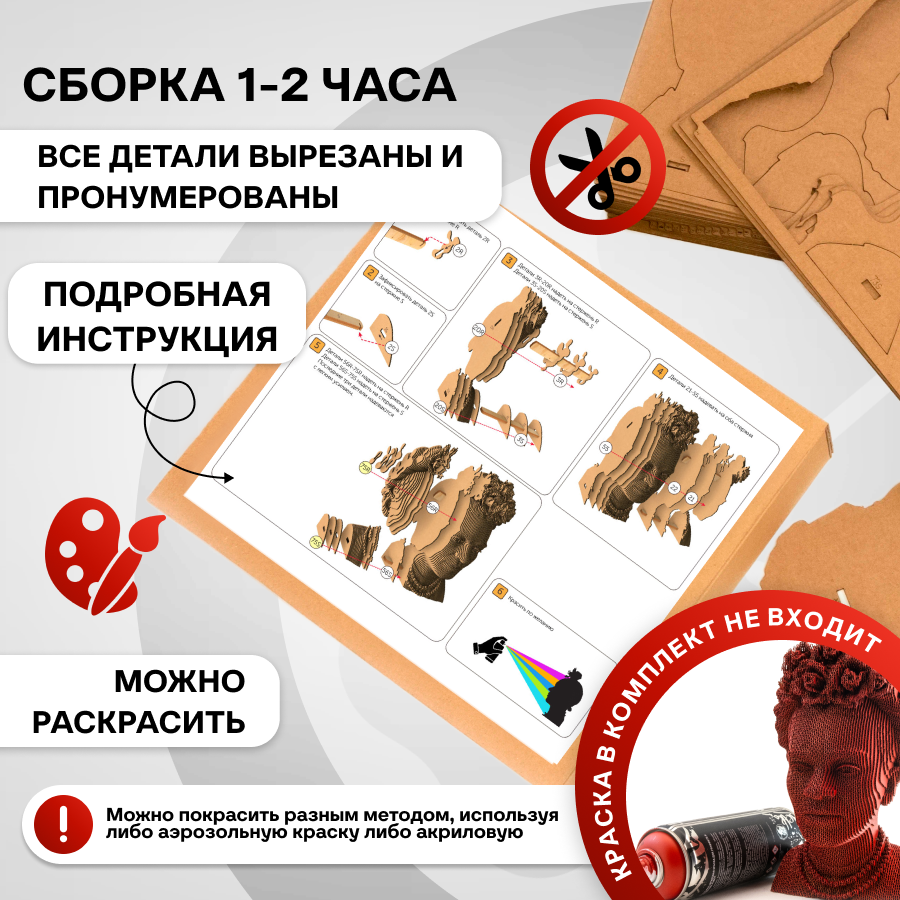 Это оригинальные 3D конструкторы (сборные модели). Каждый комплект изготовлен из пищевого гофрокартона - нетоксичного, экологически чистого материала, пригодного для повторного использования. А каждая деталь вырезана и прономерована при помощи высокоточной лазерной резки. Конструктор легко собрать по прилагаемой инструкции.