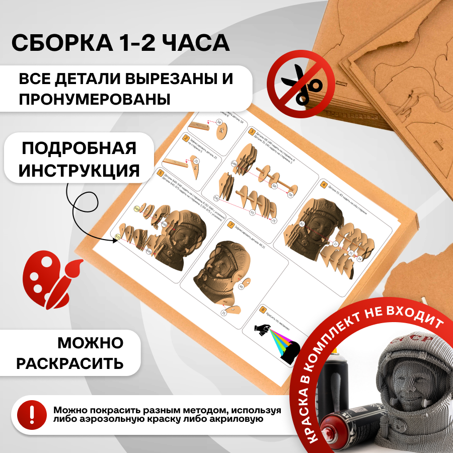 Собрать Гагарина из деталей этого 3Д конструктора достаточно просто. Нужно всего лишь следовать инструкции на упаковке. Интересное времяпрепровождение гарантировано!