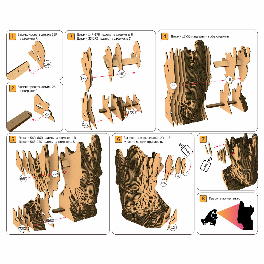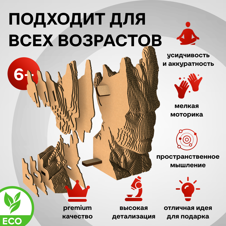 Это оригинальные 3D конструкторы (сборные модели). Каждый комплект изготовлен из пищевого гофрокартона – нетоксичного, экологически чистого материала, пригодного для повторного использования. А каждая деталь вырезана и прономерована при помощи высокоточной лазерной резки. Конструктор легко собрать по прилагаемой инструкции.