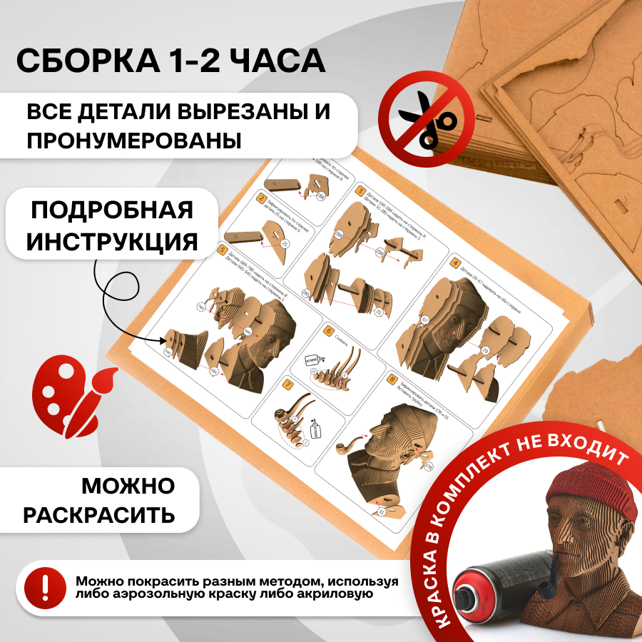 Это оригинальные 3D конструкторы (сборные модели). Каждый комплект изготовлен из пищевого гофрокартона - нетоксичного, экологически чистого материала, пригодного для повторного использования. А каждая деталь вырезана и прономерована при помощи высокоточной лазерной резки. Конструктор легко собрать по прилагаемой инструкции.