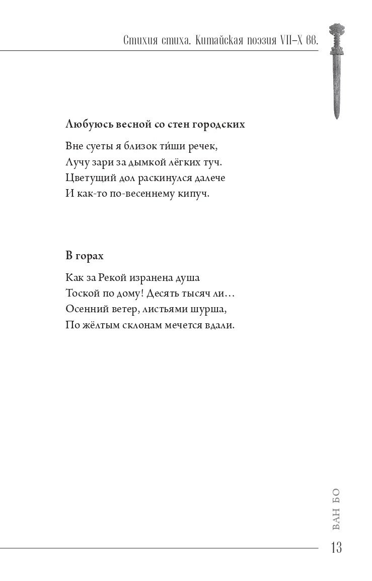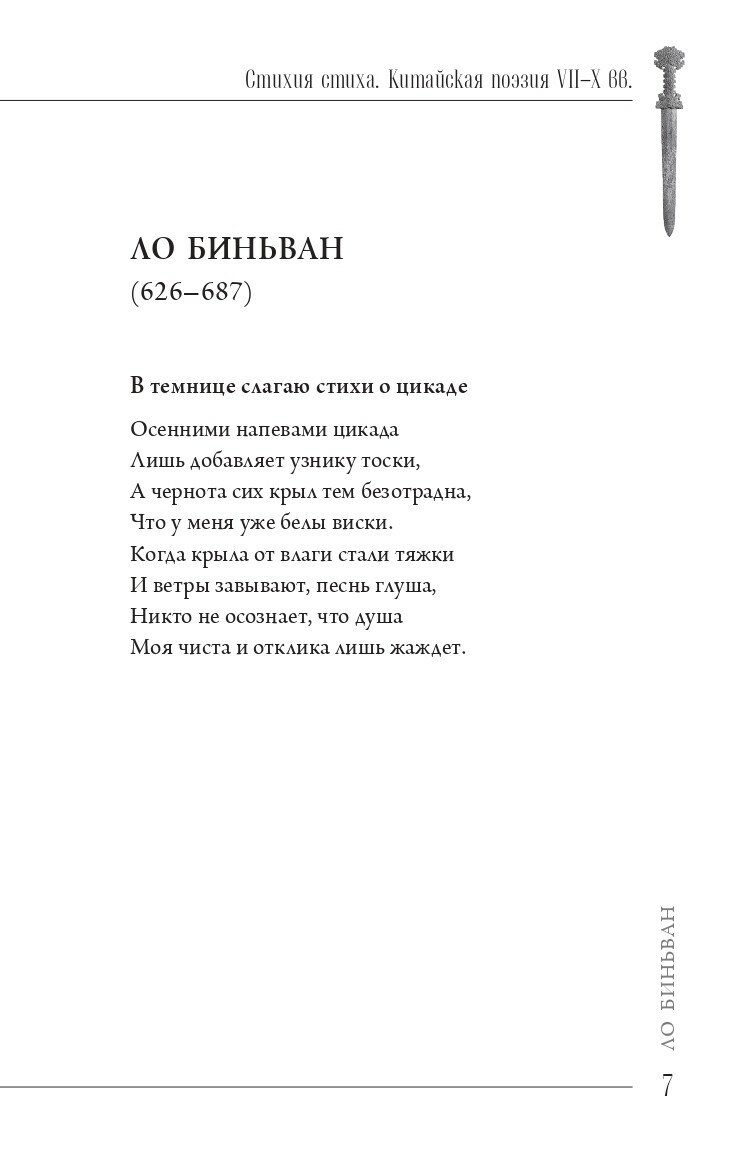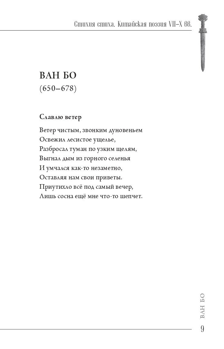 Сборник «Стихия стиха», в который вошли 140 стихотворений 40 поэтов VII–X веков (период правления династии Тан) как раз и является ответом на зов времени.