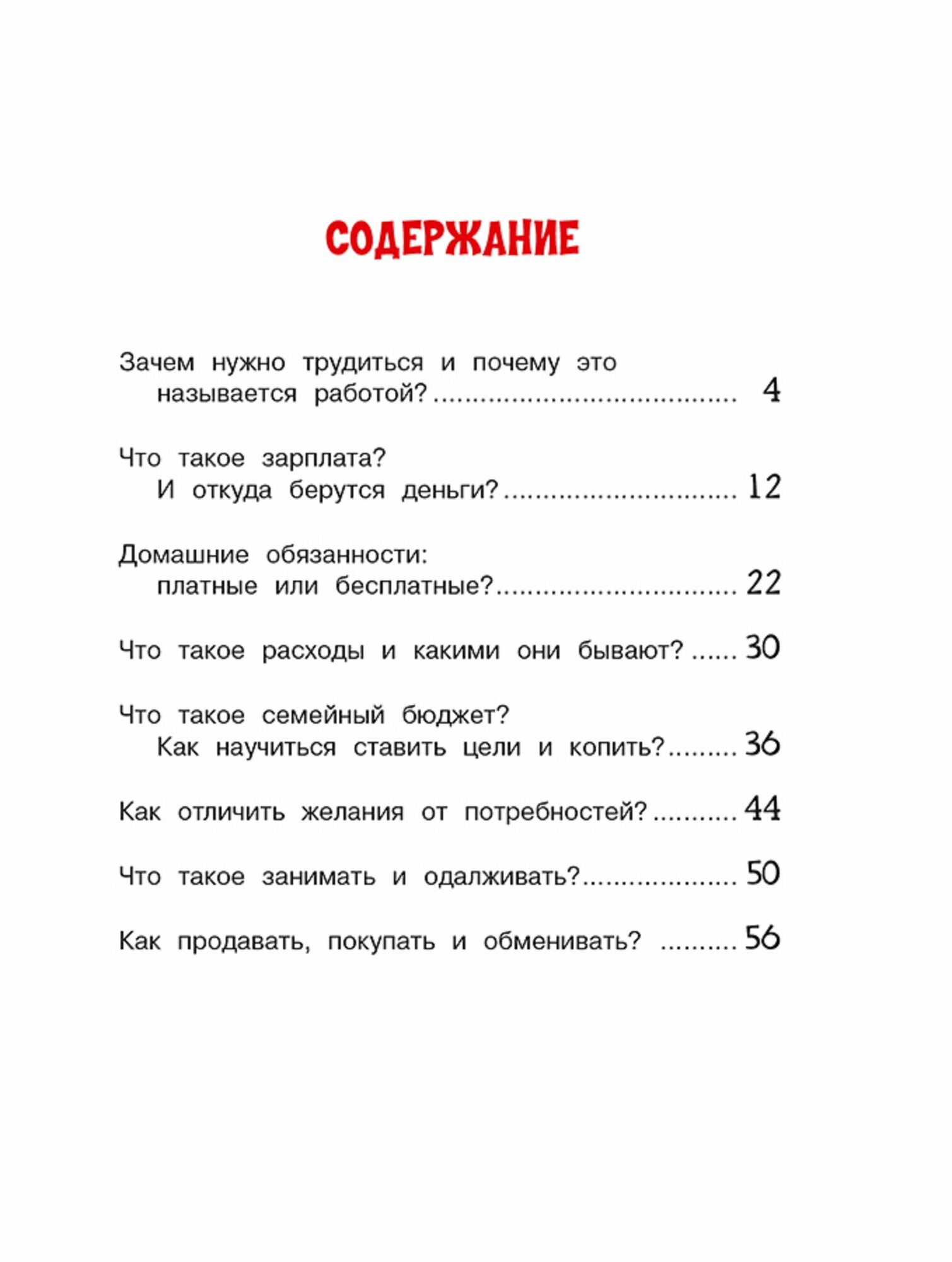 Вместе с героем этой книги ребёнок разберётся в основах финансовой грамотности: что такое работа и труд, почему за домашние дела не дают зарплату, как правильно распоряжаться карманными деньгами, как можно накопить, что такое семейный бюджет, плановые и внеплановые расходы.