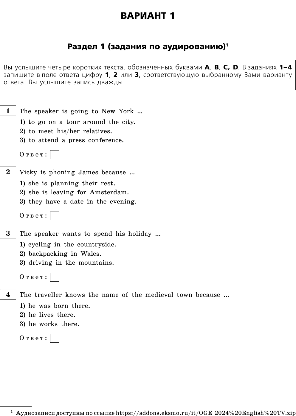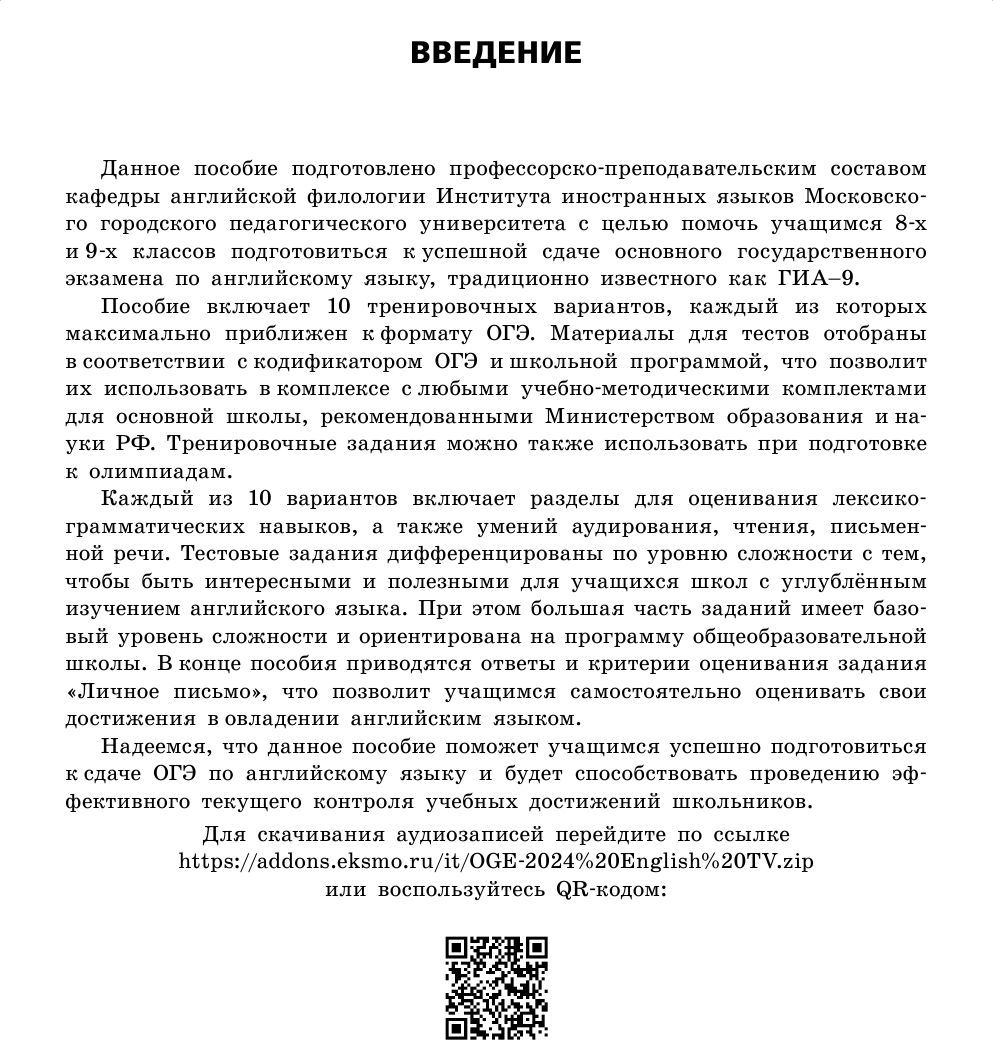 ОГЭ-2024. Английский язык. Тренировочные варианты. 10 вариантов (+ аудиоматериалы) (Громова Камилла Алексеевна, Вострикова Ольга Владимировна, Машошина Виктория Сергеевна); ООО "Издательство "Эксмо", 2023