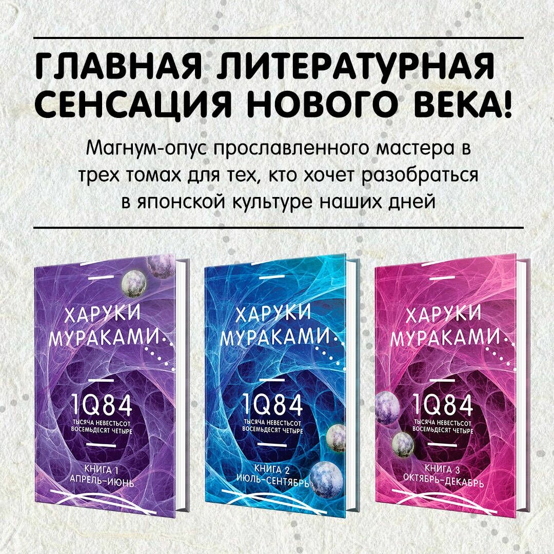 Роман самого знаменитого автора современной японской прозы, главная литературная сенсация нового века, "магнум-опус прославленного мастера" и "обязательное чтение для любого, кто хочет разобраться в японской культуре наших дней", по выражению критиков. Действие книги происходит не столько в тысяча девятьсот восемьдесят четвертом году, сколько в тысяча невятьсот восемьдесят четвертом, в мире, где некоторые видят на небе две луны, где ключом к вечной любви служит Симфониетта Яначека, где полицейских после всколыхнувшей всю страну перестрелки с сектантами перевооружили автоматическими пистолетами взамен револьверов, где LittlePeople - Маленький Народец - выходят изо рта мертвой козы и плетут Воздушный Кокон.
