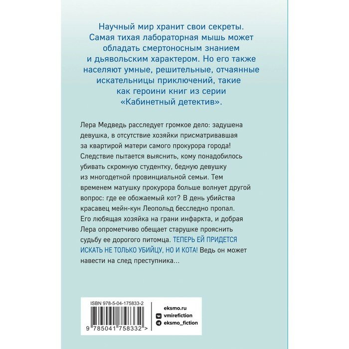 Лера Медведь расследует громкое дело: задушена девушка, в отсутствие хозяйки присматривавшая за квартирой матери самого прокурора города! Следствие пытается выяснить, кому понадобилось убивать скромную студентку, бедную девушку из многодетной провинциальной семьи. Тем временем матушку прокурора больше волнует другой вопрос: где ее обожаемый кот? В день убийства красавец-мейнкун Леопольд бесследно пропал. Его любящая хозяйка на грани инфаркта, и добрая Лера опрометчиво обещает старушке прояснить судьбу ее дорого питомца. Теперь ей придется искать не только убийцу, но и кота! Впрочем, Леопольд ведь может оказаться важным свидетелем — он был на месте преступления! Но какой помощи следствию можно ожидать от неразумного животного?..