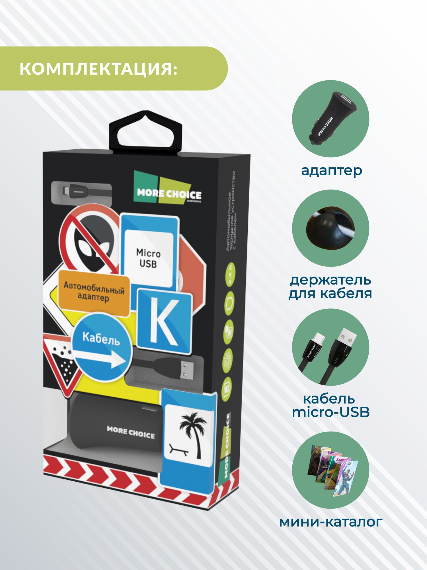 Зарядное устройство автомобильное More Choice 2*USB 2.4A для micro USB White AC23m