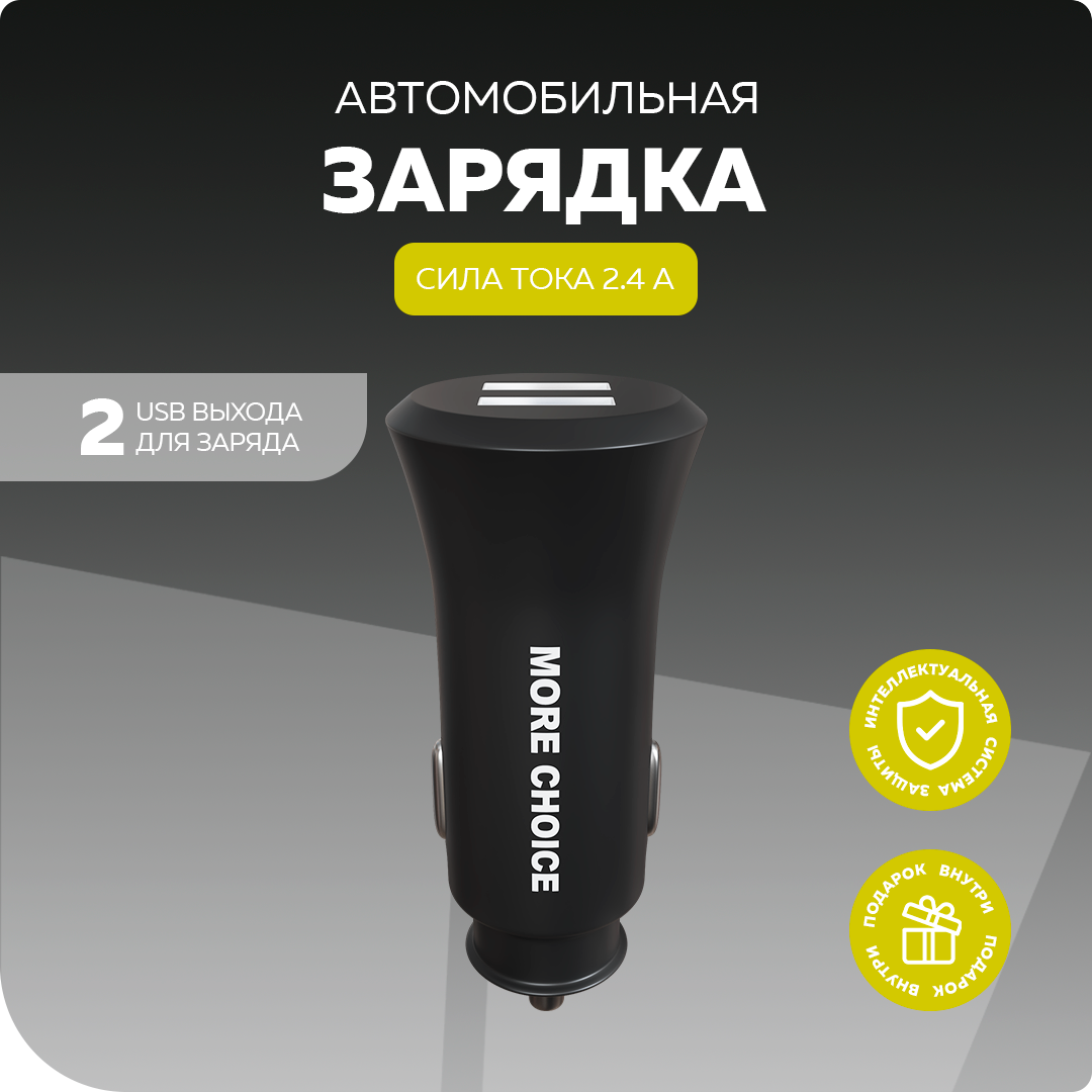 Автомобильное зарядное устройство More Choice для смартфонов, планшетов и видеорегистратора и других цифровых устройств.