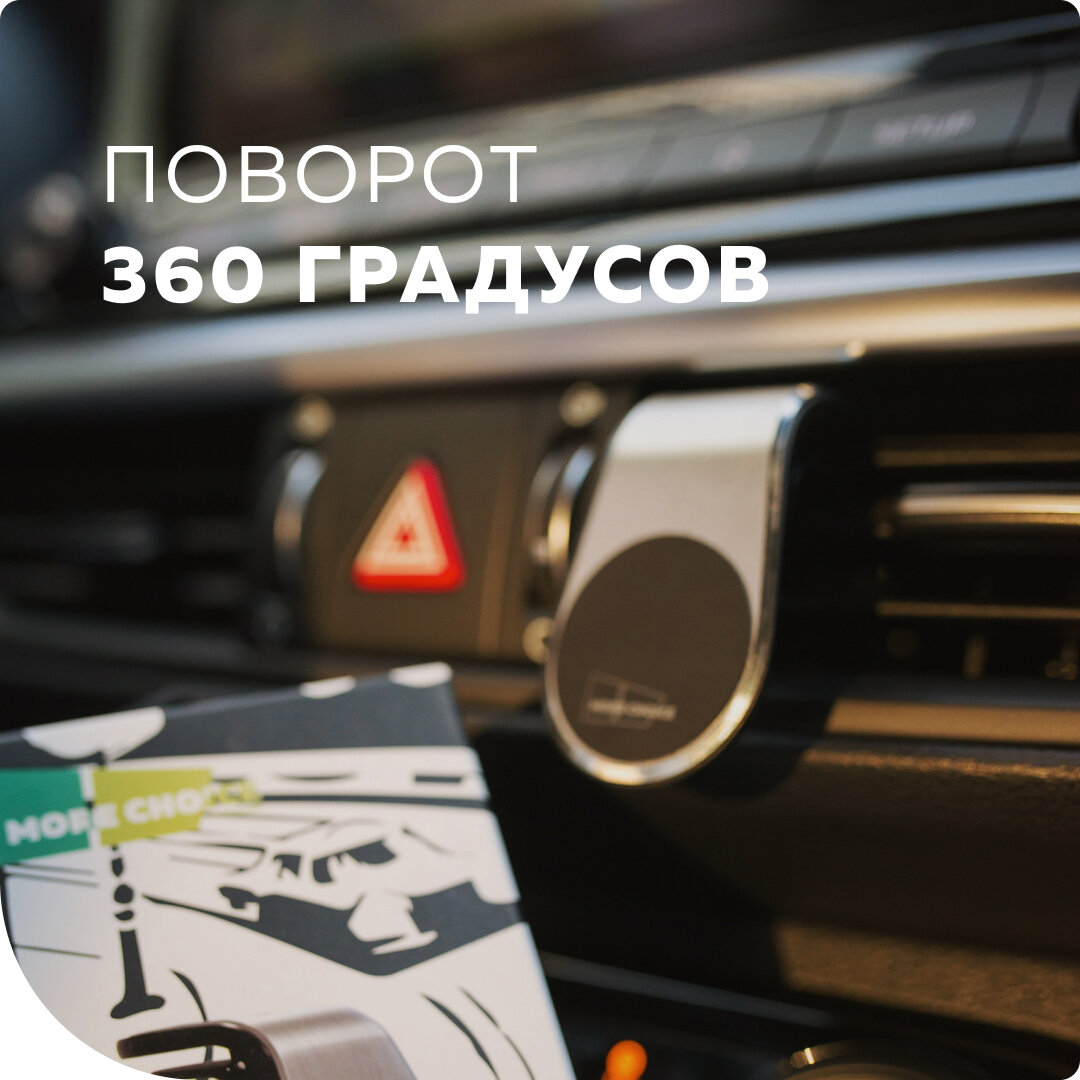 Держатель для телефона в машину магнитный More Choice предназначен для удобства размещения цифровых устройств. Его особенности это мощный магнит, который притягивает портативное устройство и плотно фиксирует его положение в салоне. Магнитный держатель позволит максимально комфортно и безопасно пользоваться смартфоном в дороге. Крепится в дефлектор (решетку обдува) при помощи специального крепления. Устанавливайте и снимайте гаджет без усилий и за одну секунду. Одним движением руки вы можете легко менять положение смартфона с вертикального на горизонтальное и обратно, а мощные магниты надежно держат смартфон на всех поворотах и неровностях дороги. Совместимость устройства: универсальный, подходит для большинства автомобилей. Держатель для телефона в машину магнитный More Choice безопасен для телефона. Материал: прочный пластик ABC, алюминиевый сплав, силикон, магнитная пластина. Автомобильный держатель магнитный для телефона в машину станет отличным подарком: Новогодним, Рождественским, на День рождение, на юбилей, 23 февраля, 8 марта, 14 февраля - День всех влюбленных или День Святого Валентина, на 1 апреля, 9 мая на любой праздник, а также просто так - без повода для мужчин и женщин, водителям, автолюбителям, мужу, жене, другу, подруге, коллеге, любимому, любимой, брату, сестре, детям и подросткам. В каталоге нашего бренда вы сможете найти еще больше аксессуаров для цифровой техники: беспроводные наушники, наушники вкладыши, кабели питания, автомобильные зарядные устройства и многое другое.