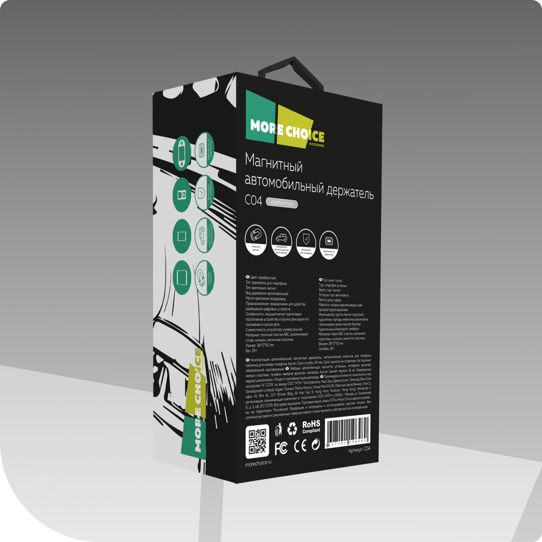 Держатель More Choice авто магнитный Silver C04