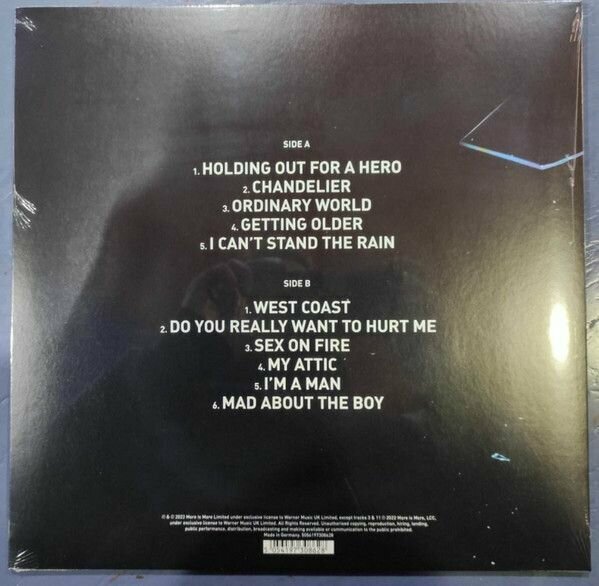 A1 Holding Out For A Hero. A2 Chandelier. A3 Ordinary World. A4 Getting Older. A5 I Cant Stand The Rain. B1 West Coast. B2 Do You Really Want To Hurt Me. B3 Sex On Fire. B4 My Attic. B5 Im A Man. B6 Mad About The Boy.