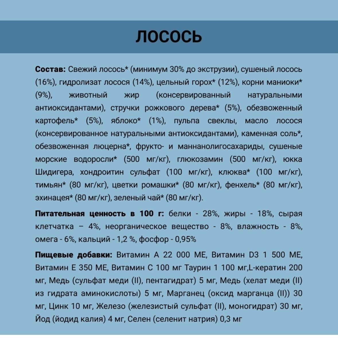| Состав корма | Лосось |