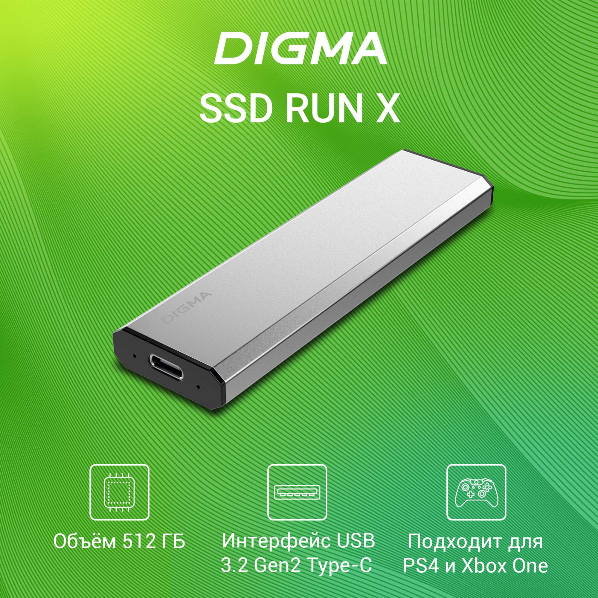 Внешний жесткий диск 512Gb Digma RUN X серебристый USB-C (dgsr8512g1msr)