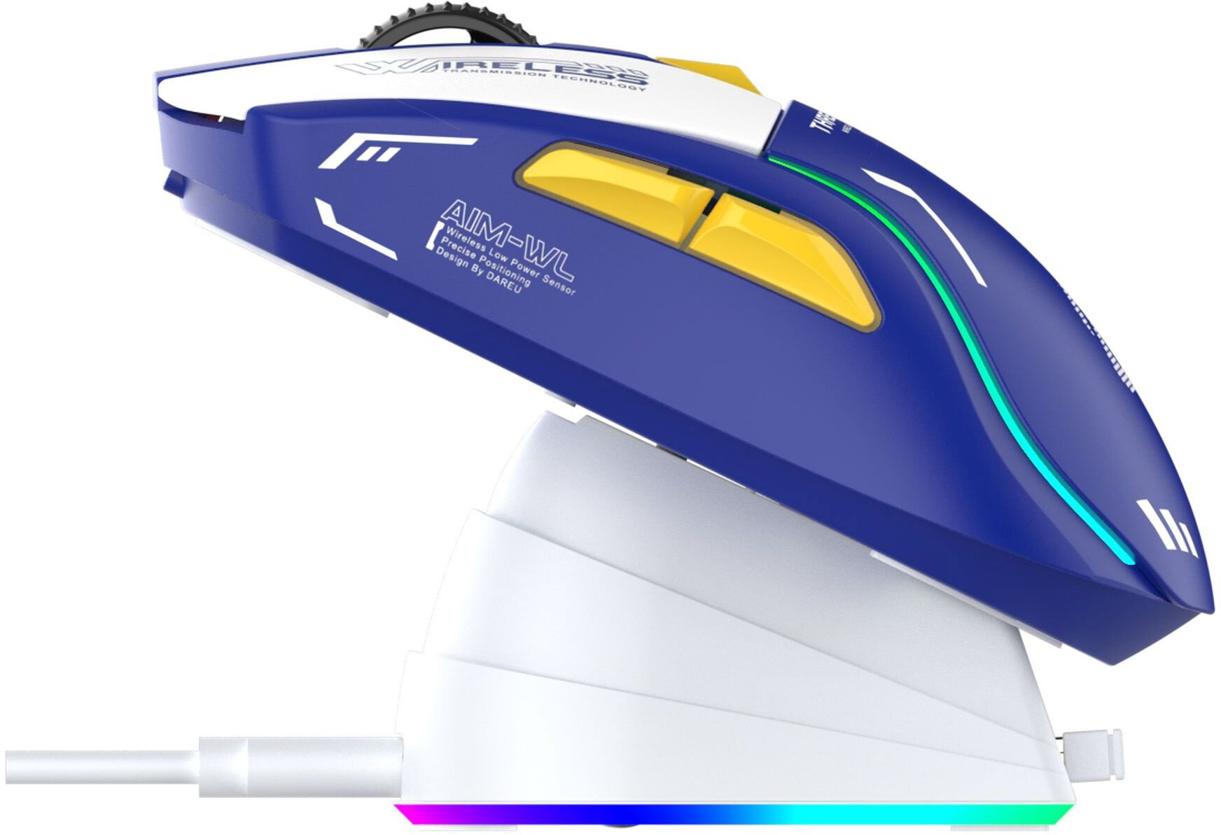 Мышь игровая беспроводная Dareu A950 Black (черный) DPI 400/800/1600/3200/6400/12000 подключение Tri-mode: проводное+2.4GHz+BT встроенный аккумулятор 930mAh зарядная станция подсветка RGB размер
