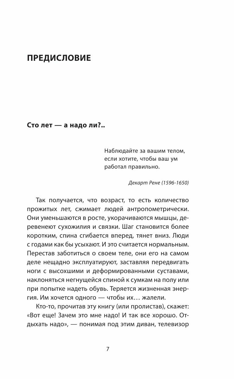 Вы узнаете пять основных условий активного долголетия, законы правильного питания для продления молодости. Познакомитесь с комплексами корригирующих здоровье упражнений при давлении, аритмии, бронхиальной астме и множестве других недугов. Вы научитесь растить детей здоровыми и не загубите собственное здоровье при уходе за тяжело больными близкими людьми.