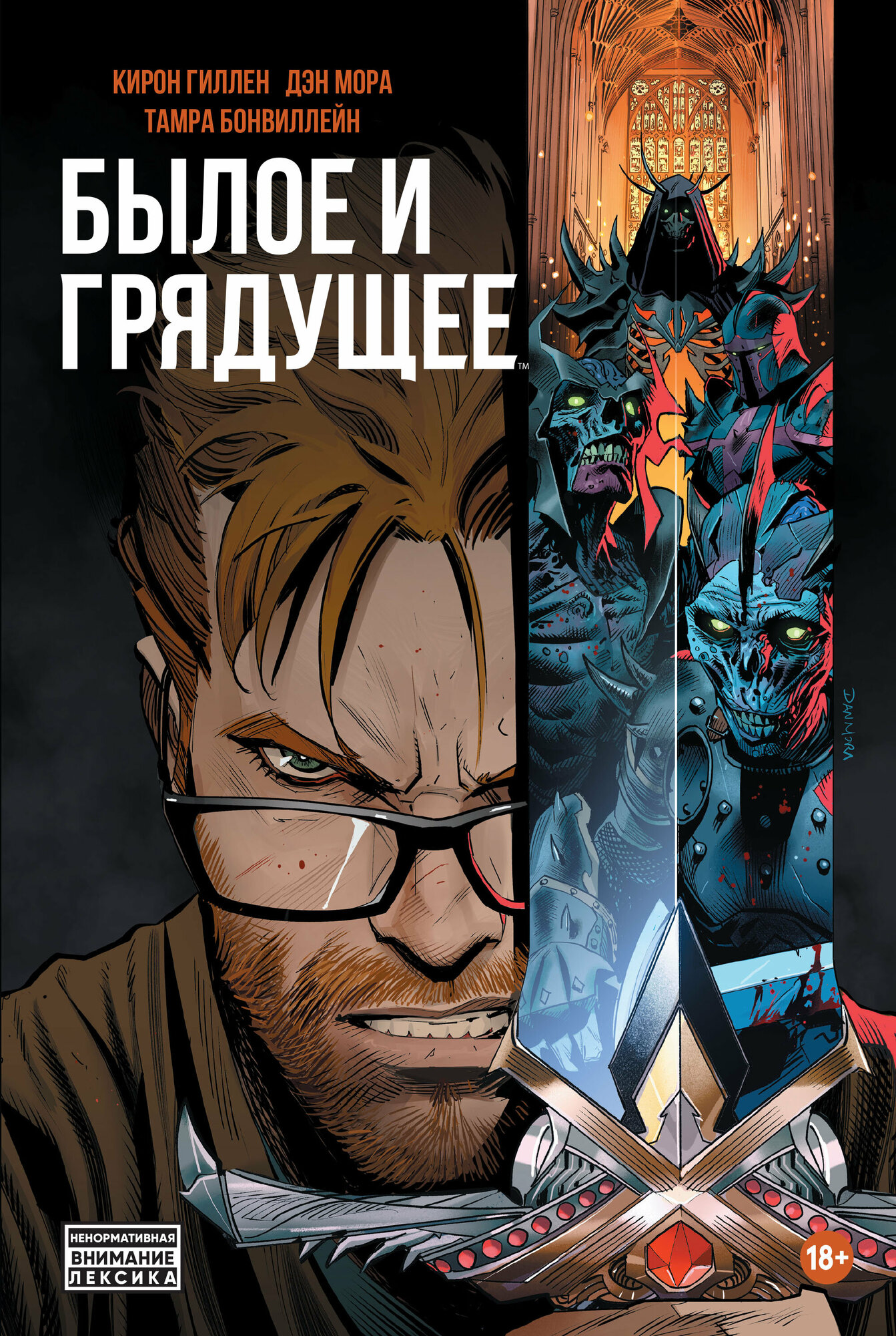 Никогда не был поклонником английской мифологии, особенно темы рыцарства эпохи Артура, слишком деревянными казались герои этих времён, а чрезмерный неоправданный пафос лишь всё усугублял. Однако в данном комиксе, небезысвестные автор Кирон Гиллен и художник Дэн Мора, берут знакомую историческую веху, и помещают её просто в безумнейший танец из приключений и юмора. Конечно здесь есть и гнетущая составляющая, но это всё лишь приятное дополнение к общему сюжету. Главные герои это находка, бабушка и внук - кипящая смесь, которую должен оценить каждый читатель. Второстепенные персонажи живые, они ни чуть не уступают главным героям, а порой даже обыгрывают их и подогревают интерес ещё больше. Недавно издательство Альпака подарила русскому читателю комикс Нечто убивает детей, который сорвал бурю оваций, теперь пришла пора Былого и грядущего. Эти два комикса однозначно стоят своих денег, но ни в коем случае не дарите их детям, контент хоть и не имеет сексуальный характер, но нецензурные выражения и сцены насилия присутствуют, поэтому строго 18+.