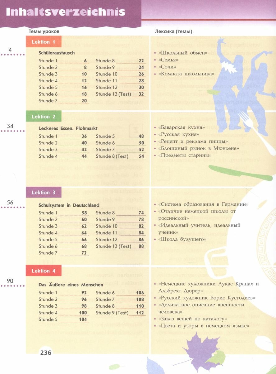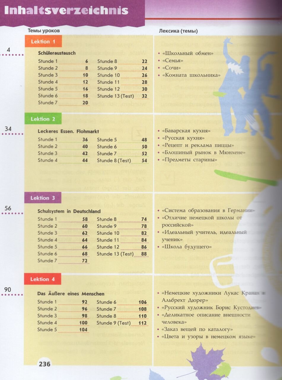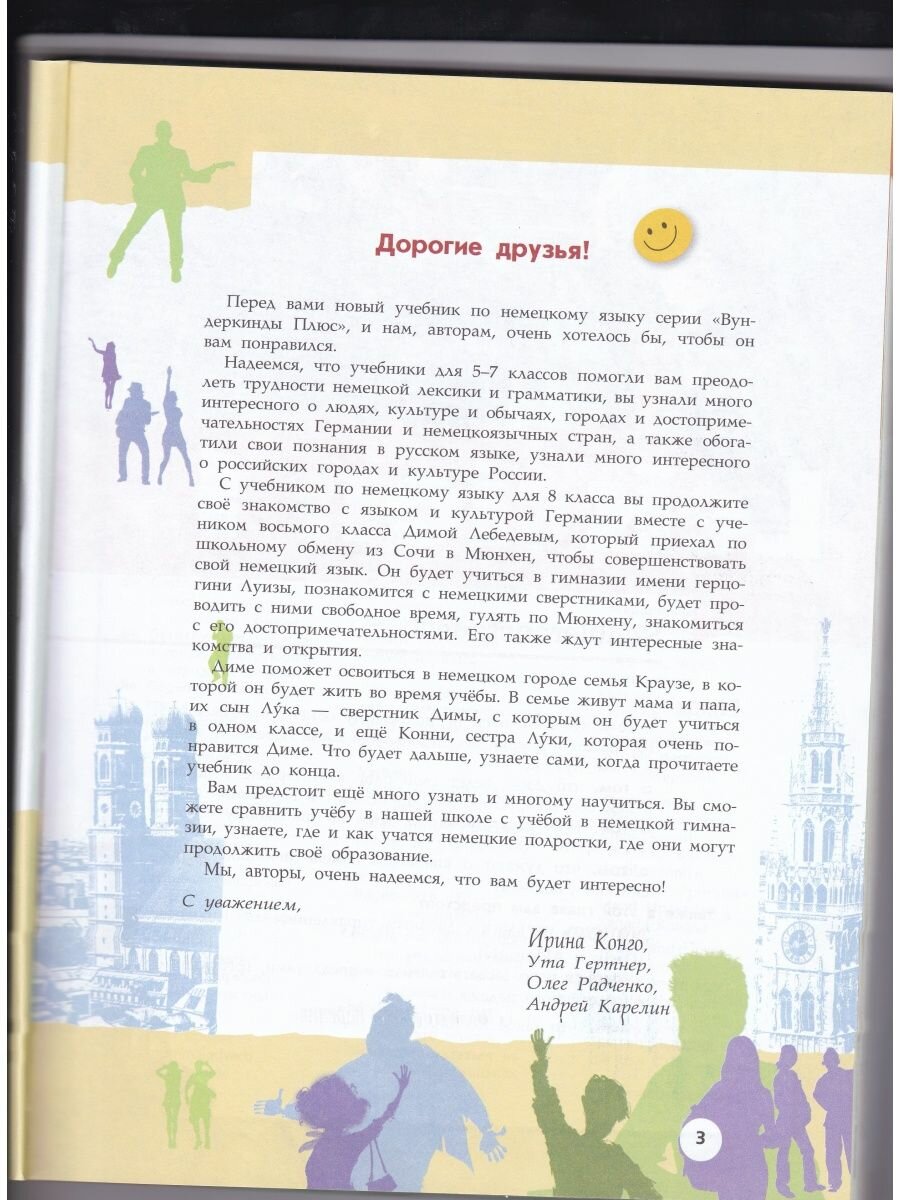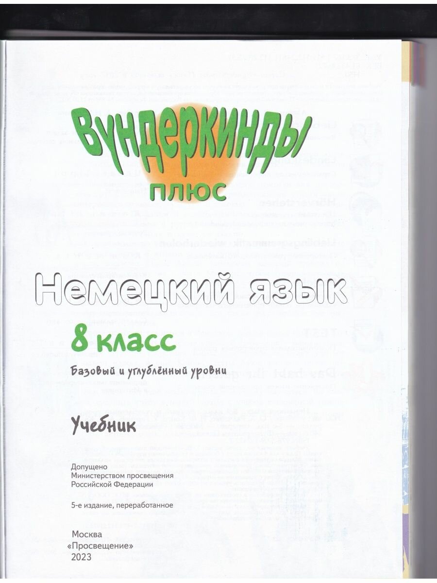 Учебник является составной частью УМК "Немецкий язык" серии "Вундеркинды Плюс" для 8 класса школ с базовым и углублённым изучением немецкого языка. Материал учебника составлен интернациональным авторским коллективом. Сюжетная основа, разворотный принцип подачи материала (один разворот содержит материал одного сорокаминутного урока), наличие дополнительного модуля Extra-Blatter с заданиями на отработку грамматических навыков даёт возможность учителю проводить уроки с максимальной эффективностью в группах с любым уровнем обученности.