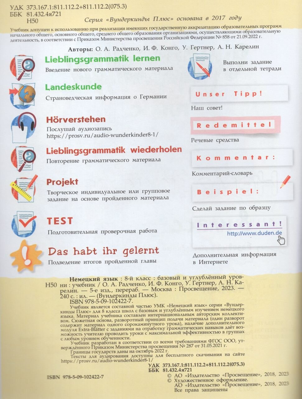 Немецкий язык. 8 класс. Учебник. Базовый и углублённый уровни (Радченко Олег Анатольевич, Конго Ирина Францевна, Гертнер Ута); Просвещение, 2023