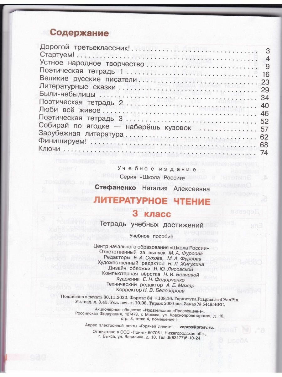 Литературное чтение. 3 класс. Тетрадь учебных достижений. Учебное пособие (Стефаненко Наталия Алексеевна); Просвещение, 2023