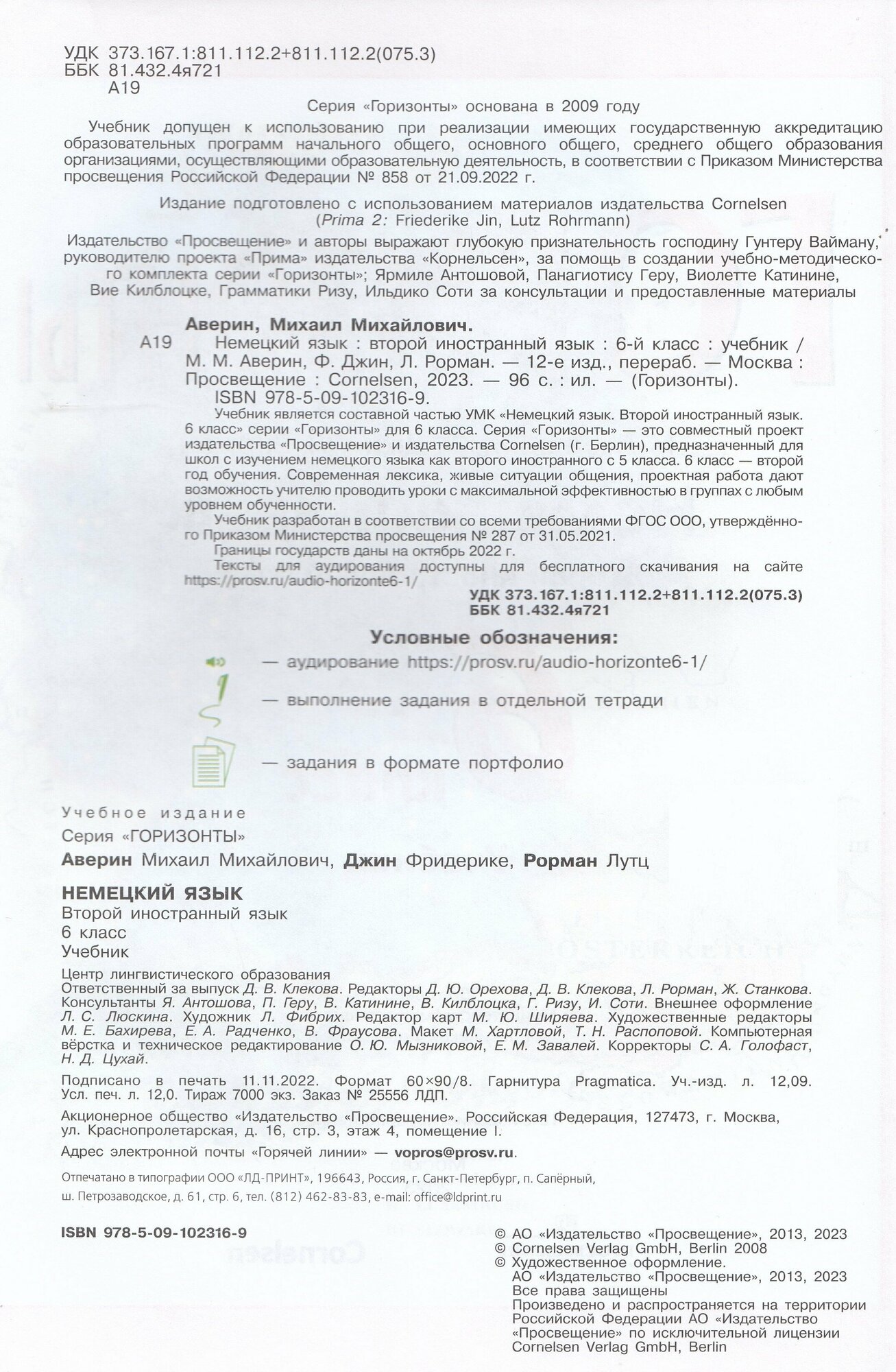 Deutsch. Немецкий язык. Второй иностранный язык. 6 класс. Учебник. /Horizonte/ ФГОС 2021 (Михаил Михайлович Аверин, Фридерике Джин, Лутц Рорман); Просвещение, 2025