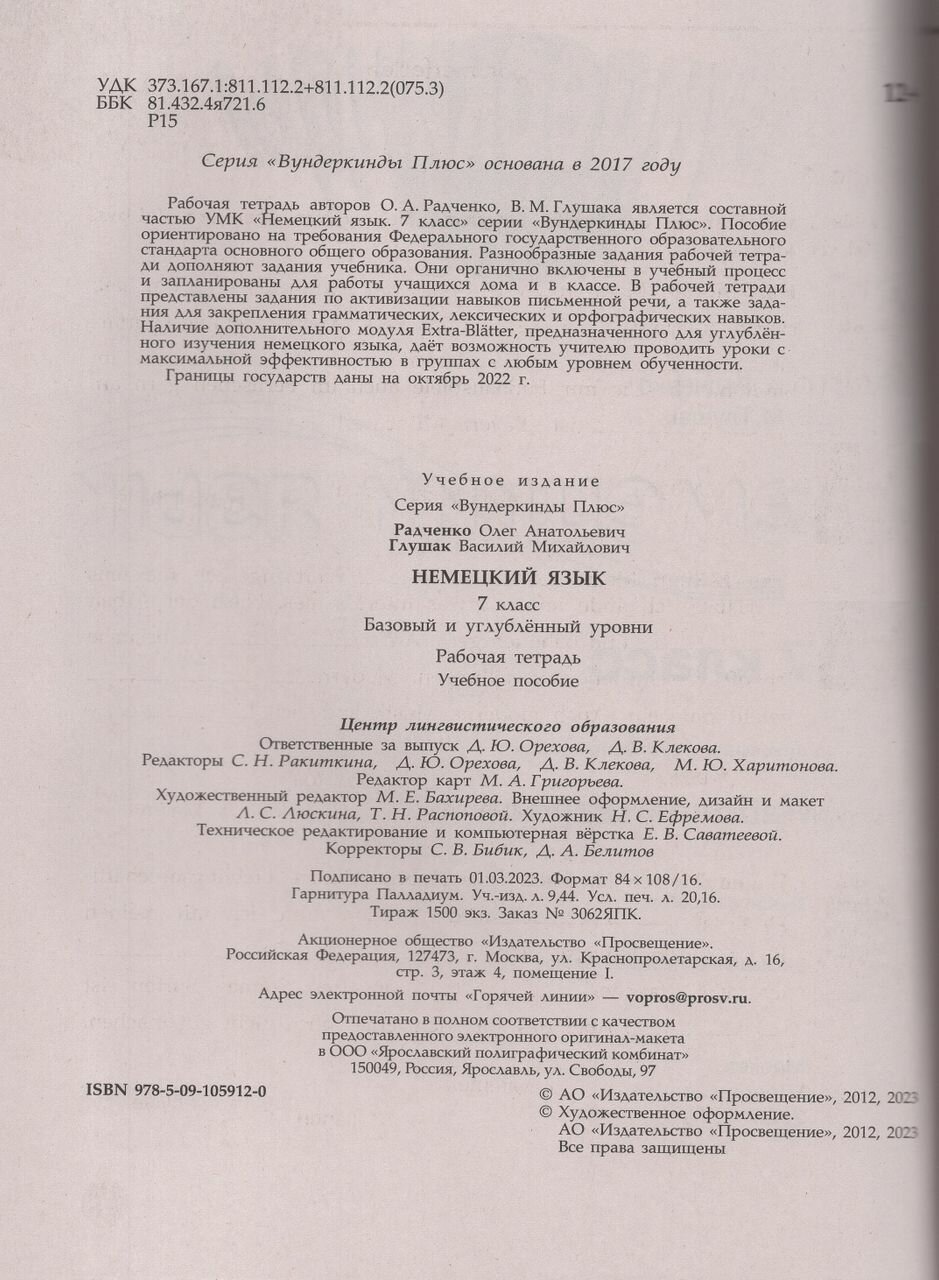 Deutsch. Немецкий язык. 7 класс. Базовый и углубленный уровни. Рабочая тетрадь. Учебное пособие (Василий Михайлович Глушак, Олег Анатольевич Радченко); Просвещение, 2025