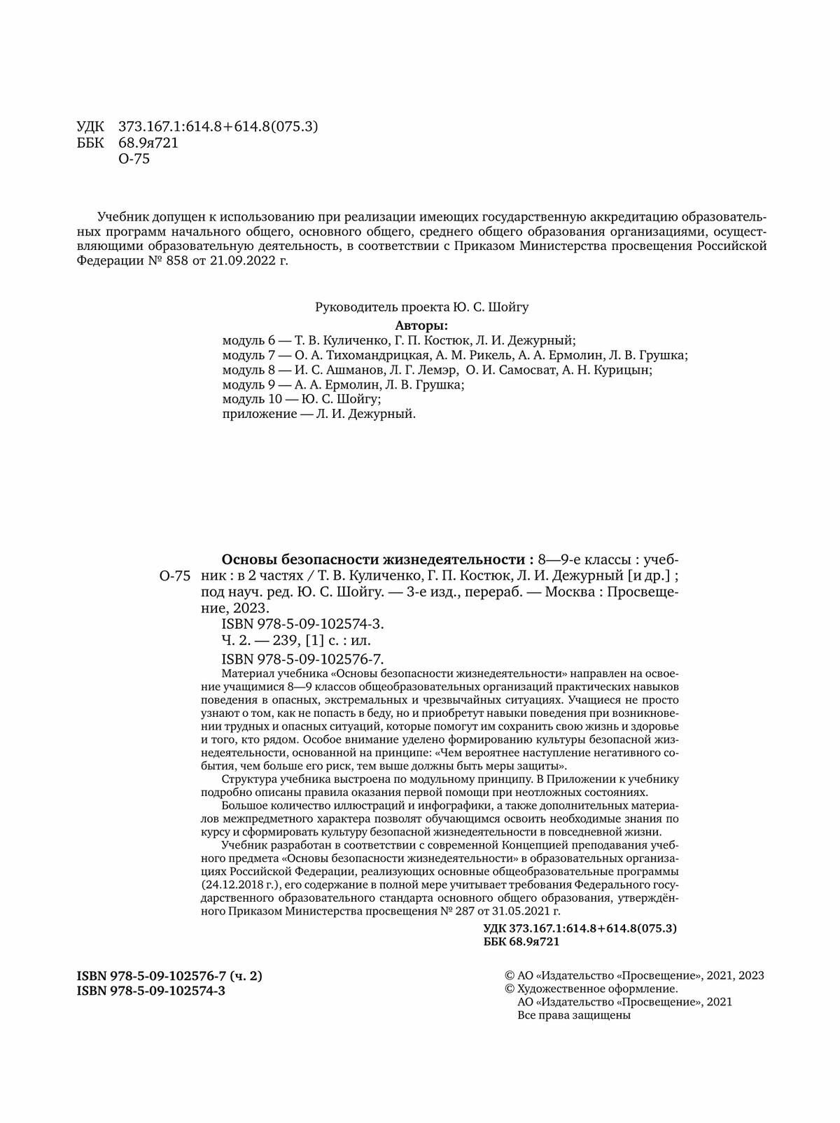 | Серия | ОБЖ под ред. Шойгу Ю.С. (8-9) |