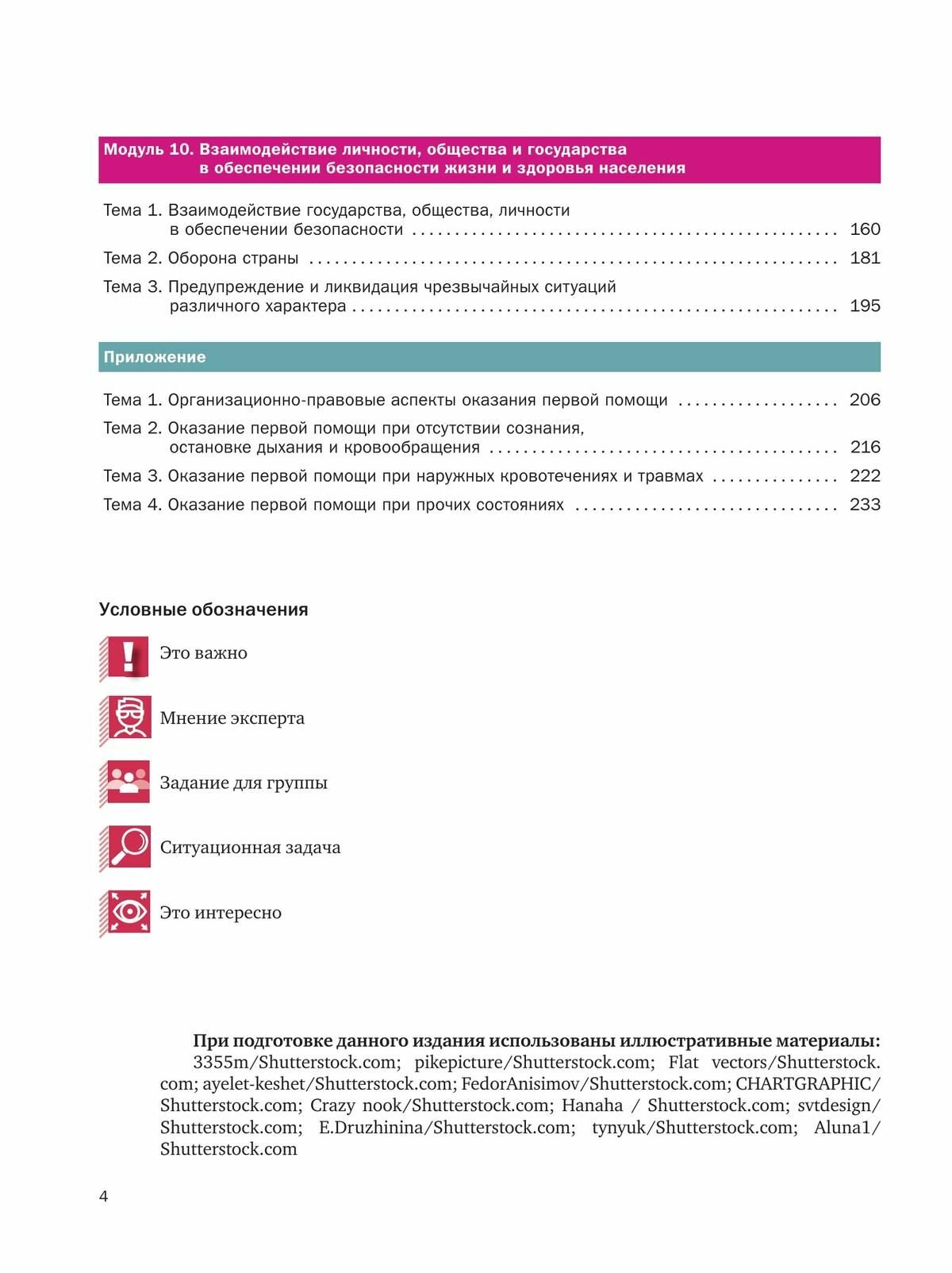 Структура учебника выстроена по модульному принципу. В Приложении к учебнику подробно описаны правила оказания первой помощи при неотложных состояниях.