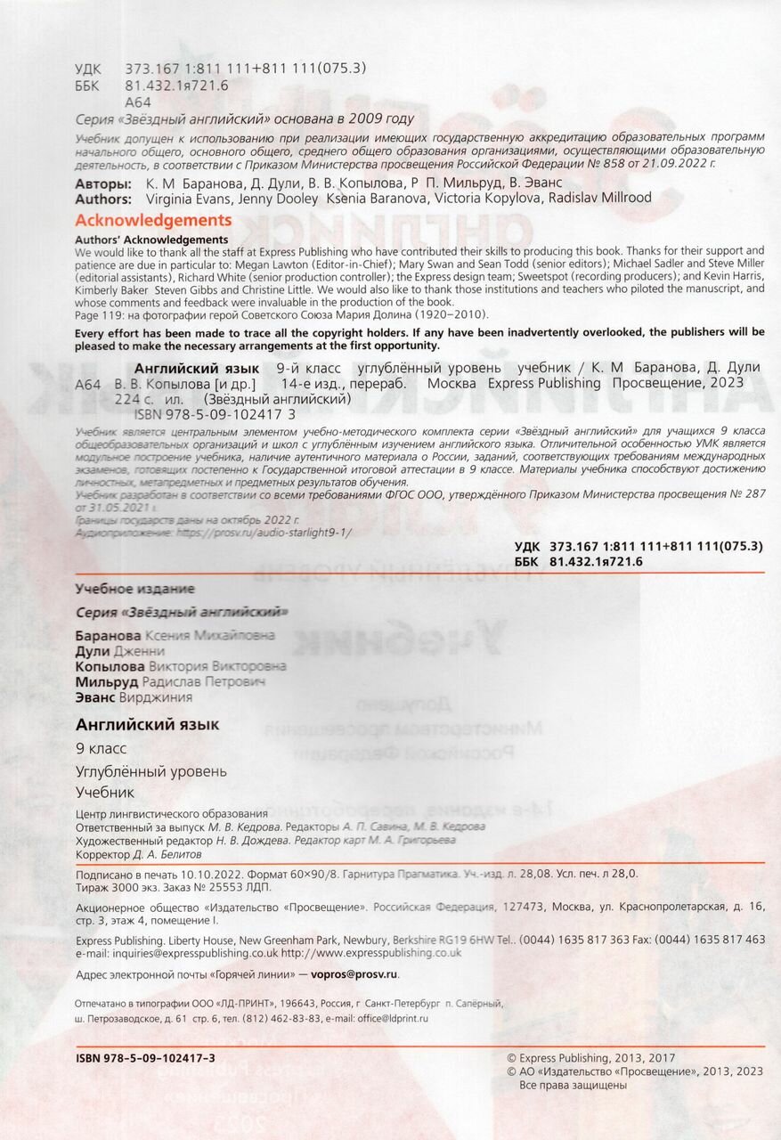 Starlight. Students Book. Английский язык. 9 класс. Учебник. Углублённый уровень (Баранова Ксения Михайловна; Дули Дженни; Подоляко Ольга Евгеньевна; Эванс Вирджиния; Мильруд Радислав Петрович); Просвещение, 2023