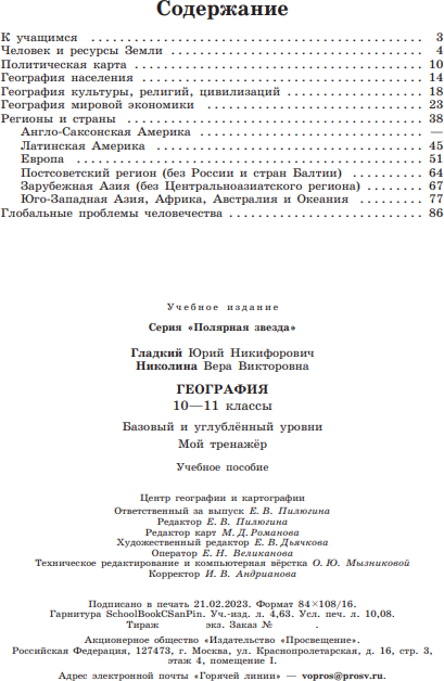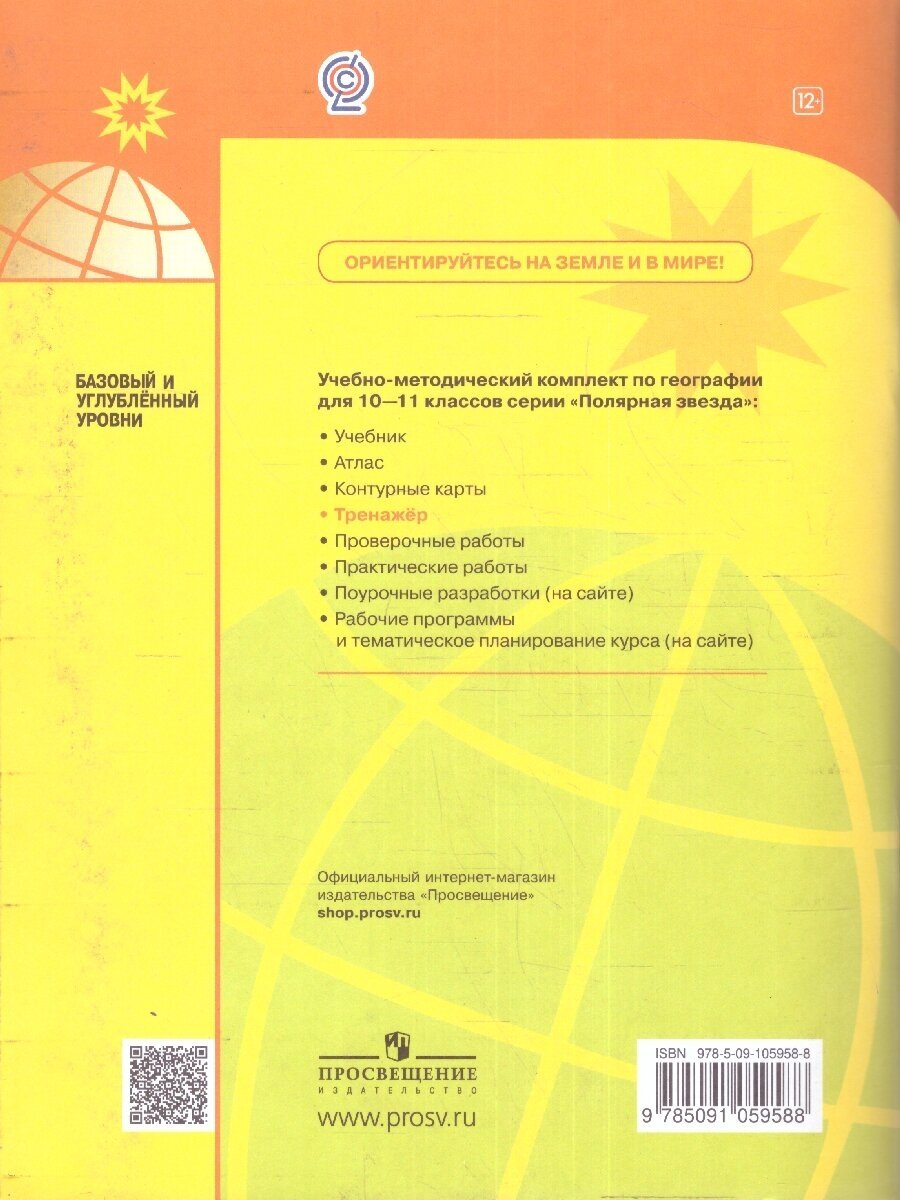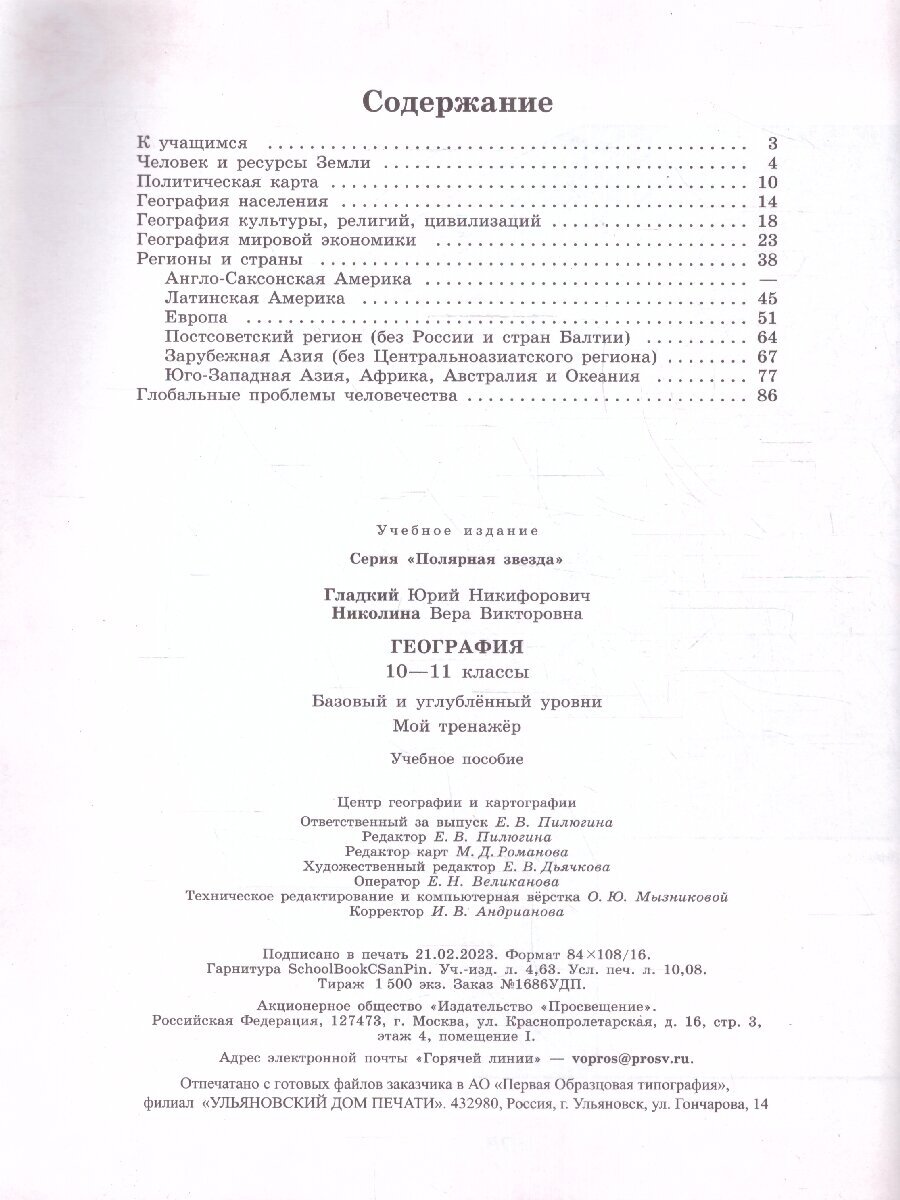 География. 10-11 классы. Базовый и углублённый уровни. Мой тренажёр. Учебное пособие (Николина Вера Викторовна,Гладкий Юрий Никифорович); Просвещение, 2023