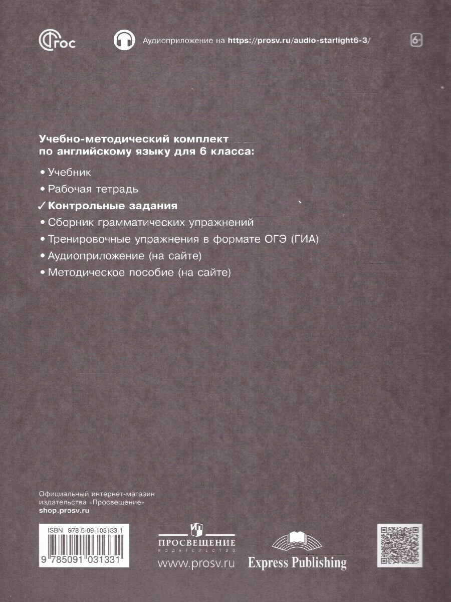 Starlight. Английский язык. 6 класс. Углубленный уровень. Контрольные задания. Учебное пособие (Баранова Ксения Михайловна, Мильруд Радислав Петрович, Копылова Виктория Викторовна); Просвещение, 2023