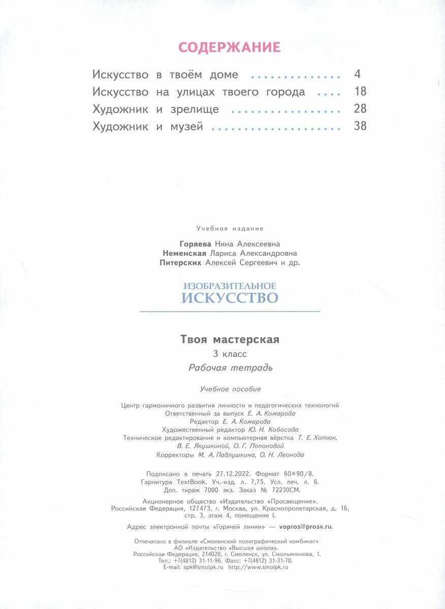 Рабочая тетрадь вместе с учебником "Изобразительное искусство. 3 класс" (под редакцией Б. М. Неменского) составляет единый учебный комплект.