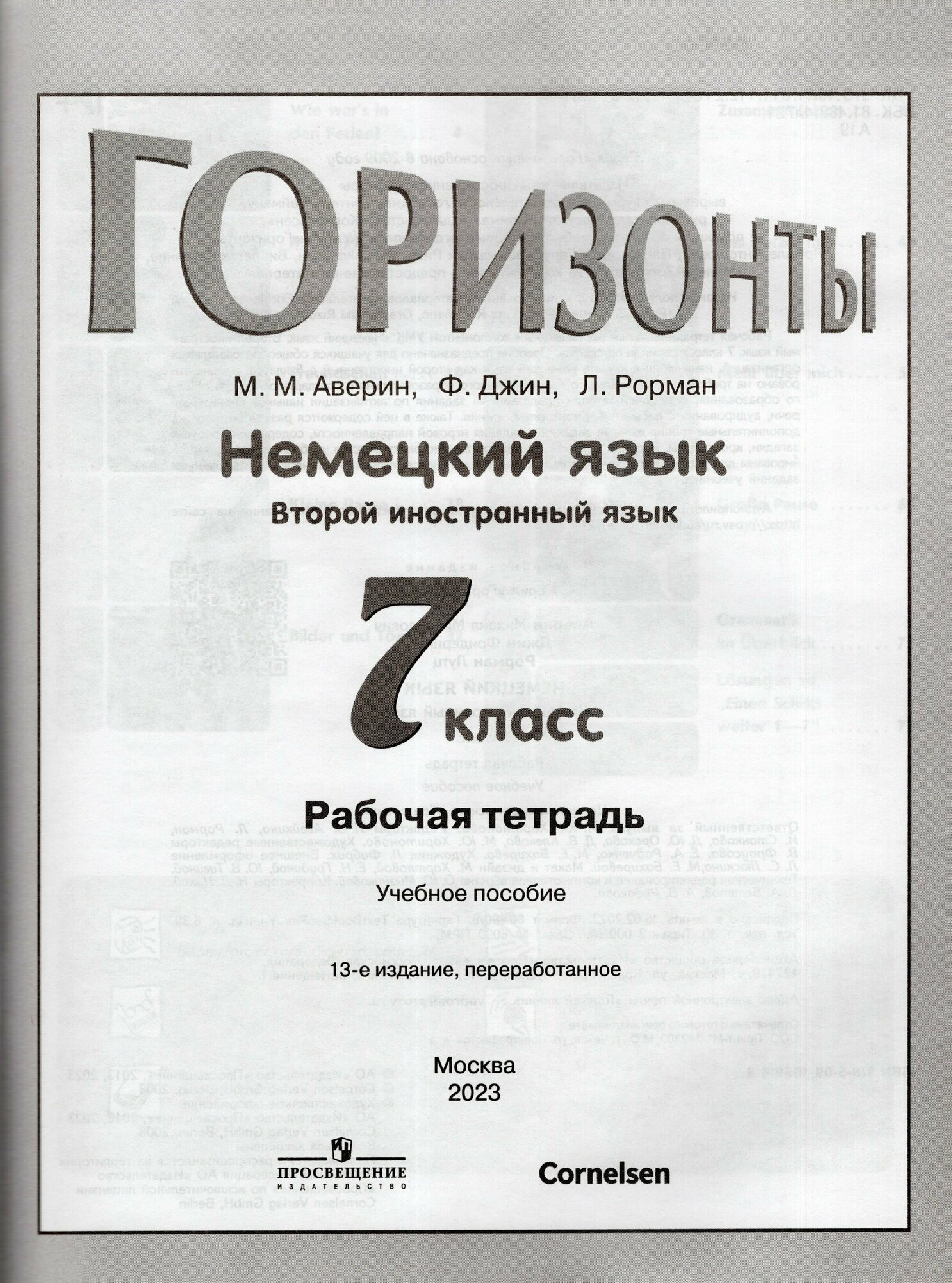 Deutsch. Немецкий язык. Второй иностранный язык. 7 класс. Рабочая тетрадь. Учебное пособие (Аверин Михаил Михайлович, Джин Фридерике, Лутц Рорман); Просвещение, 2023