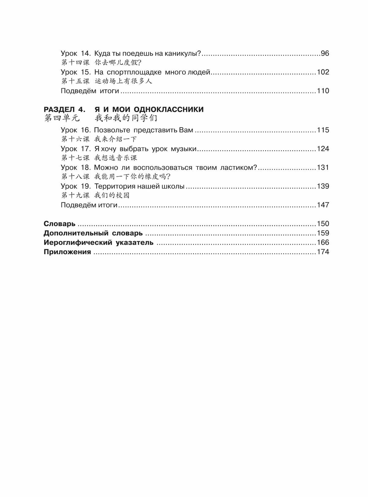 (Китайская Народная Республика) и предназначен для обучающихся общеобразовательных организаций, начинающих изучать китайский язык в качестве второго иностранного языка с 5 класса. Настоящий учебник подготовлен в соответствии с требованиями ФГОС ООО, утверждённого приказом Министерства просвещения № 287 от 31.05.2021 г. Сбалансированная структура, большой объём страноведческих знаний, аутентичность текстов, педагогически выверенные материалы для аудирования и тренировочных упражнений, привлекательный дизайн, созданные с учётом возрастных особенностей обучающихся и лучших современных образовательных практик, направлены на успешную реализацию целого ряда подходов в преподавании китайского языка школьникам, прежде всего межкультурного коммуникативного. Использование материалов данного учебника в учебном процессе направлено на достижение личностных, метапредметных и предметных результатов.