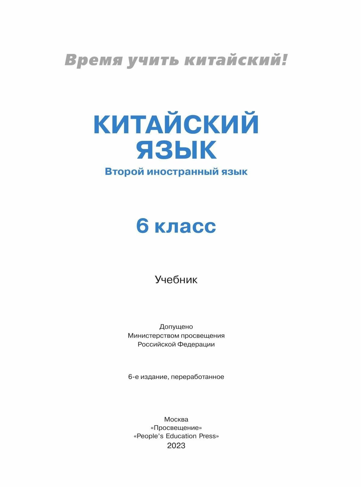 Учебник "Китайский язык. Второй иностранный язык. 6 класс" серии "Время учить китайский!" создан совместно с издательством "People'