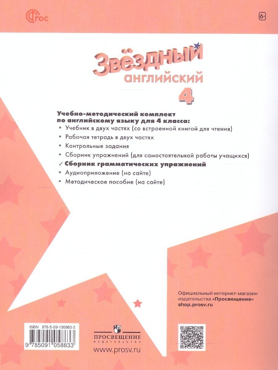 Пособие является составным компонентом УМК серии "Звёздный английский" для 4 класса общеобразовательных организаций и школ с углублённым изучением английского языка и призвано обеспечить учащимся качественную помощь в отработке изученного грамматического материала и достижении планируемых результатов по английскому языку. Пособие состоит из десяти модулей, тематически соответствующих модулям учебника, содержит краткую справку по грамматическим явлениям и разнообразные задания по трём видам речевой деятельности (письмо, чтение, говорение) на тренировку и закрепление материала. Задания построены по принципу усложнения и содержат элементы творчества: выполняя упражнения, учащиеся путешествуют вместе с котом Рыжиком по миру, навещая его многочисленных друзей. Ключи к заданиям пособия размещены на сайте издательства. Сборник может быть использован для самостоятельной работы учащихся, занятий в классе и индивидуальных занятий с репетитором.
