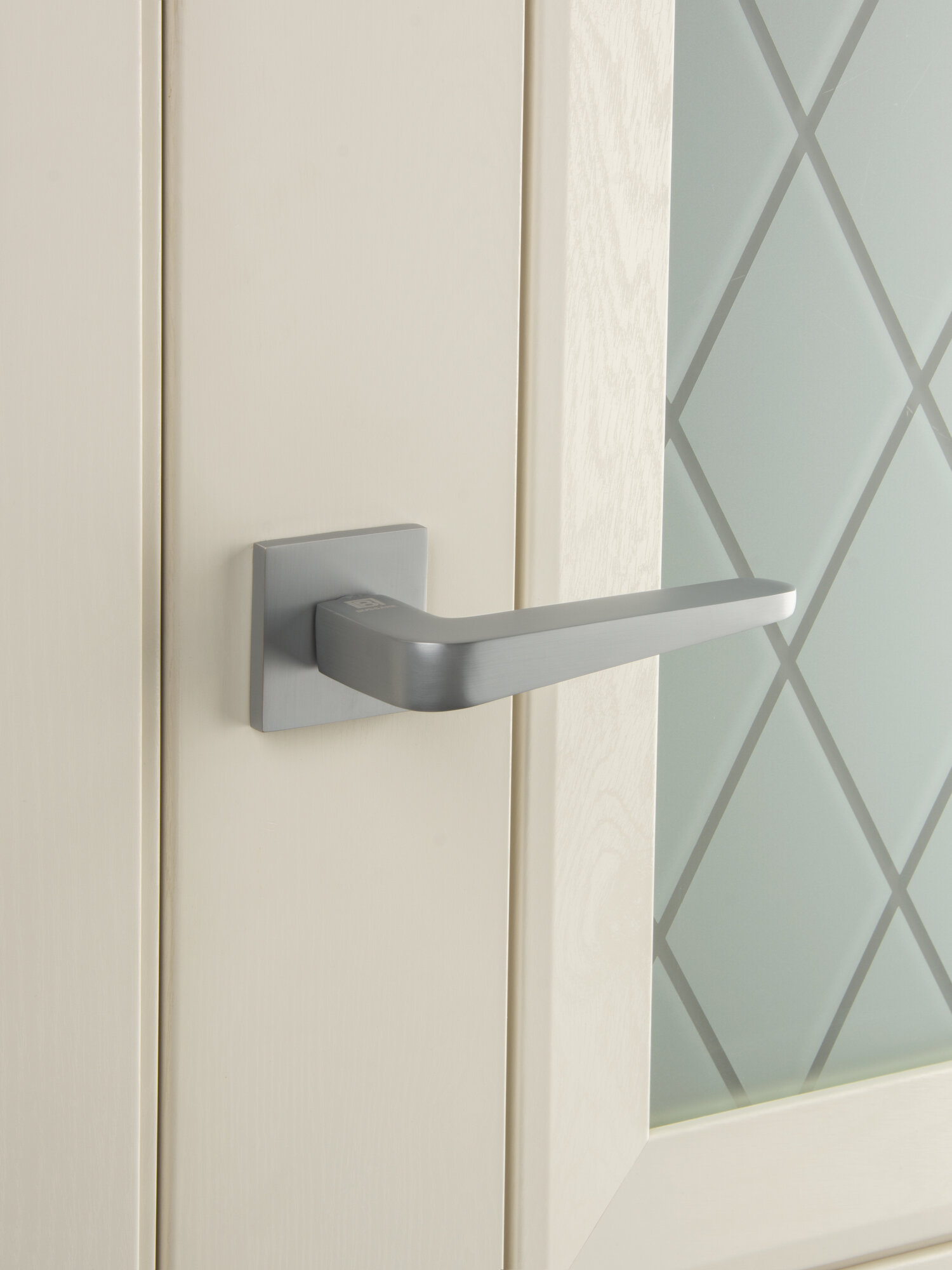 Ручка дверная межкомнатная BUSSARE на квадратном основании PRONTO в цвете Матовый хром идеально подходит на любые двери внутри помещений: в комнаты, санузел, офис. Ручка имеет многослойное покрытие, обеспечивающее ровный цвет и защиту от внешнего воздействия. Механизм дверных ручек BUSSARE рассчитан на 200 000 рабочих циклов, что достигается путем использования усовершенствованной пружины из закаленной стали. В комплект входит две ручки, квадратный стержень и крепеж - комплект на одну дверь. Благодаря стандартному креплению ручки можно дополнить фиксирующим механизмом нужного типа – с защелкой, заверткой, замком (приобретается отдельно, в зависимости от ваших потребностей). Ручка легко устанавливается в любую межкомнатную дверь без специальной подготовки. Идеально сочетается по цвету с защелками, завертками Bussare.