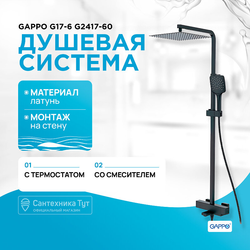 На сегодняшний день товар «Душевая стойка Gappo G17-6 с термостатом черный матовый G2417-60» можно купить с кешбеком в 3 магазинах: Santehnika-room, Сантехника Тут, Яндекс.Маркет