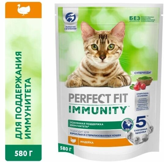PERFECT FIT Immunity Корм сух.индейкаспирулина и клюква д/кошек 580г PERFECT FIT (10255392)