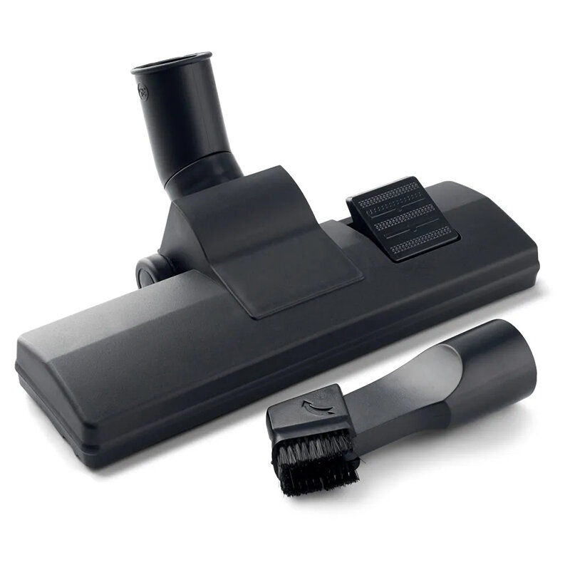 Комбинированная насадка «пол-ковер». С помощью насадки со встроенной выдвижной щеткой можно эффективно пропылесосить ковер, паркет, ламинат, линолеум и кафель. Крючок в задней части позволяет закрепить вертикально щетку вместе с трубкой и шлангом на корпусе пылесоса.