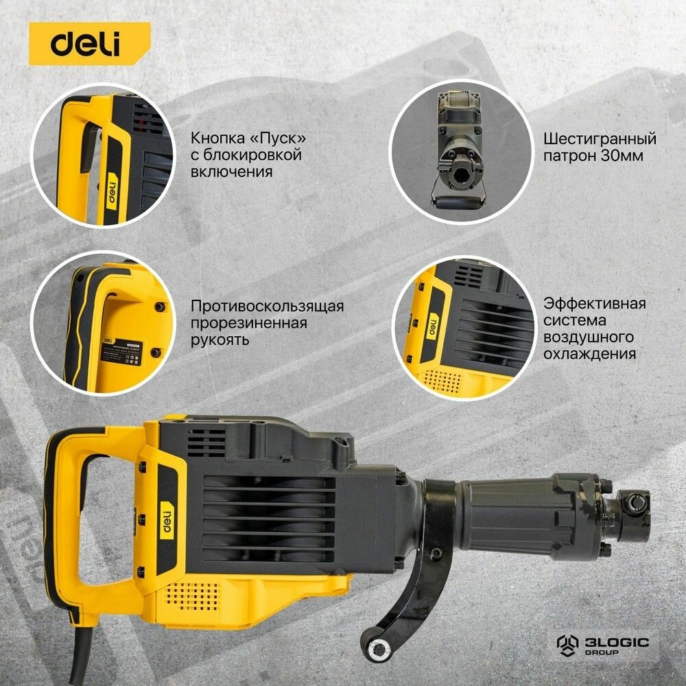 Отбойный молоток Deli DL-DG15-E1 (1900Вт 55Дж 2000уд/мин кейс в комплекте пика и долото)