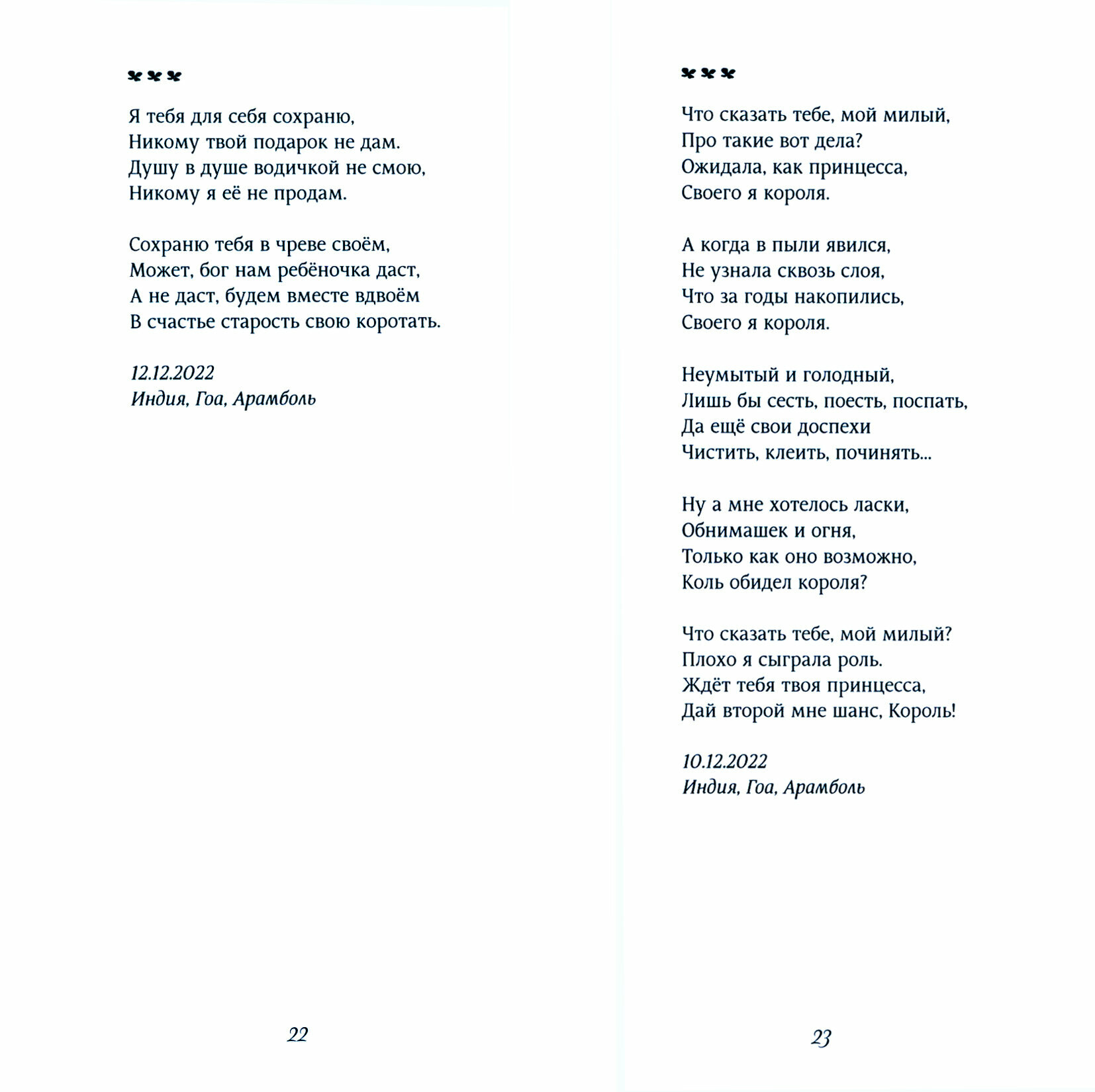 В этой книге вы познакомитесь с новыми стихами известной российской поэтессы Гуль Бахор (Гульбахор Сидориной), полными чувственности и ярких образов, идущих из самой глубины души. Это стихи о разных стадиях зрелой любви, об умении наслаждаться одиночеством и обществом любимого и любящего мужчины, о встречах и разлуках, о жизни и смерти, об умении быть счастливым здесь и сейчас, философские размышления о событиях, происходящих в мире. Приятного путешествия по лабиринтам чувственности с Гуль Бахор!