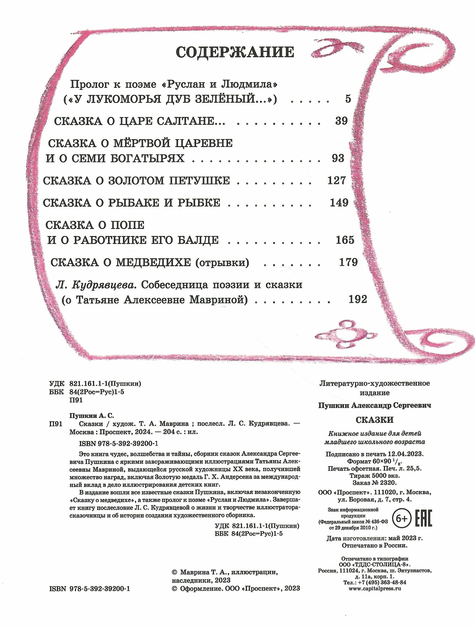 Книга: Сказки (Пушкин А.С.,худож.МавринаТ.А.,послесл.КудрявцеваЛ.С.); Проспект, 2023