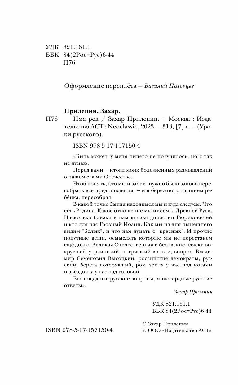 Книга: Имя рек (Захар Прилепин); АСТ, Neoclassic, 2025