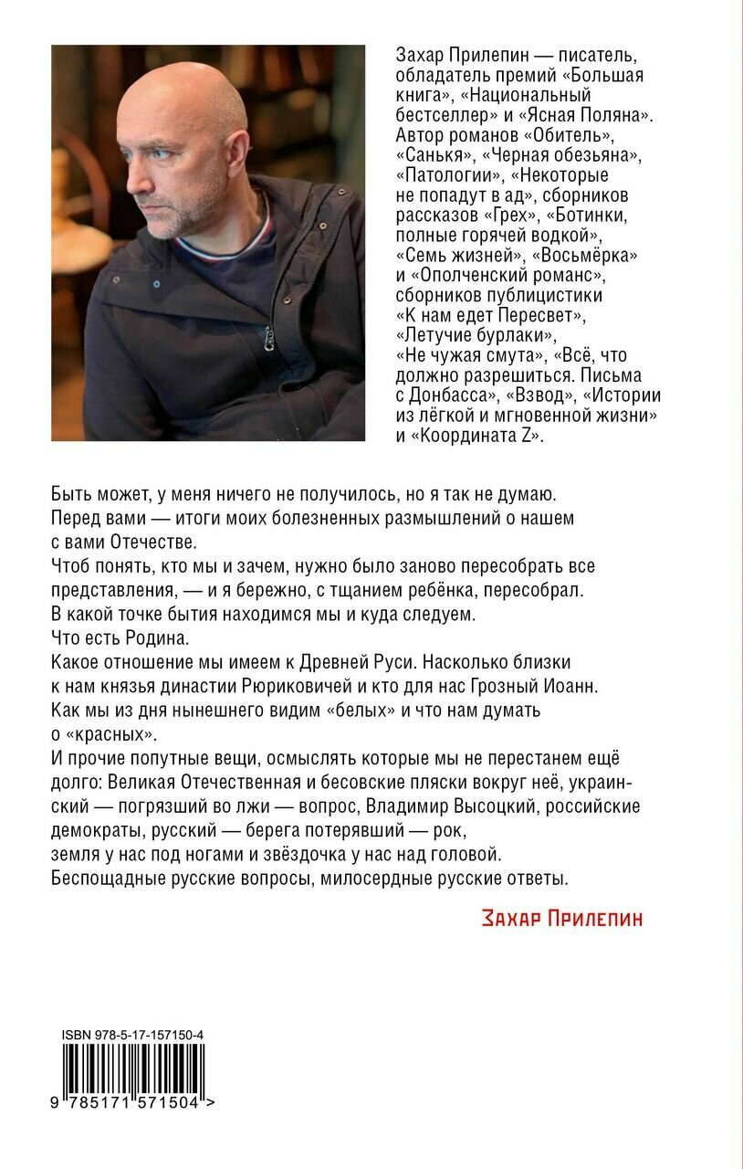 Одна из лучших книг Захара Прилепина.Как разговор с близким хорошим другом. Ясно и просто. Публицистика которая будет близка каждому. Предыдущее издание было раскуплено все и в Москве невозможно было купить ни одной книги ни в одном книжном магазине. И это тоже показатель востребованности книги. Наконец мы дождались переиздания. Купите и читайте, не пожалеете.
