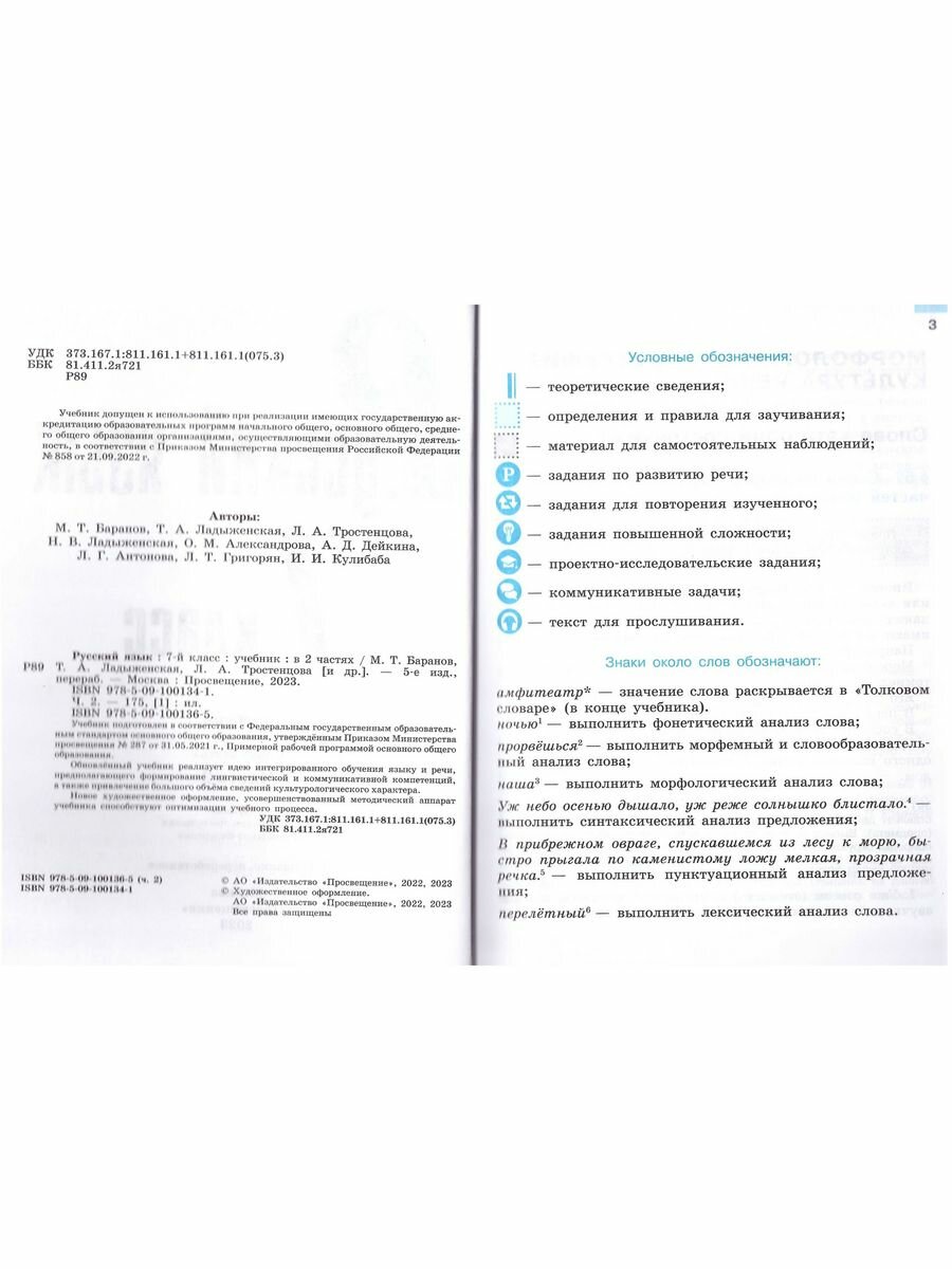 Русский язык. 7 класс. Учебник. В 2 частях. Часть 2 (Баранов Михаил Трофимович, Тростенцова Лидия Александровна, Ладыженская Таиса Алексеевна); Просвещение, 2023