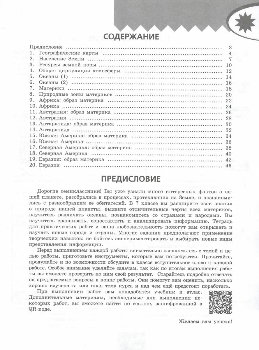 В предлагаемом учебном пособии представлены практические работы согласно требованиям Федерального образовательного стандарта основного общего образования для каждого изучаемого раздела курса географии 7 класса. При выполнении работ учащиеся смогут определить сферы применения географических знаний в жизни людей, что позволит повысить их мотивацию и интерес к изучению географии. Содержание работ направлено на развитие творческого потенциала, формирует навыки комплексной работы с информацией и навыки анализа собственных действий. Фиксированный формат работ призван развивать умения организации учебной деятельности.