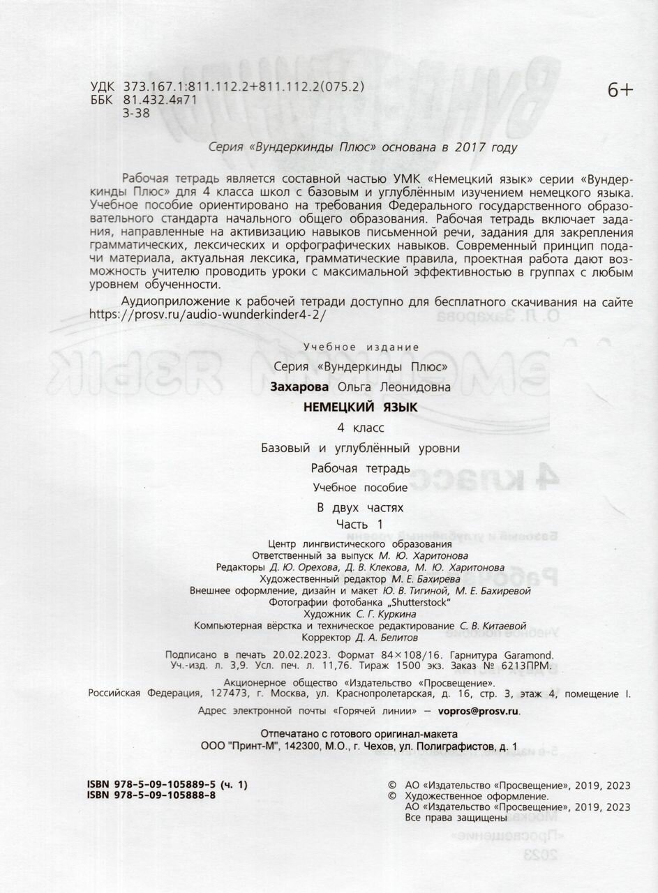 Deutsch. Немецкий язык. 4 класс. Базовый и углубленный уровни. Рабочая тетрадь. В двух частях. Часть 2 (Захарова Ольга Леонидовна); Просвещение, 2024