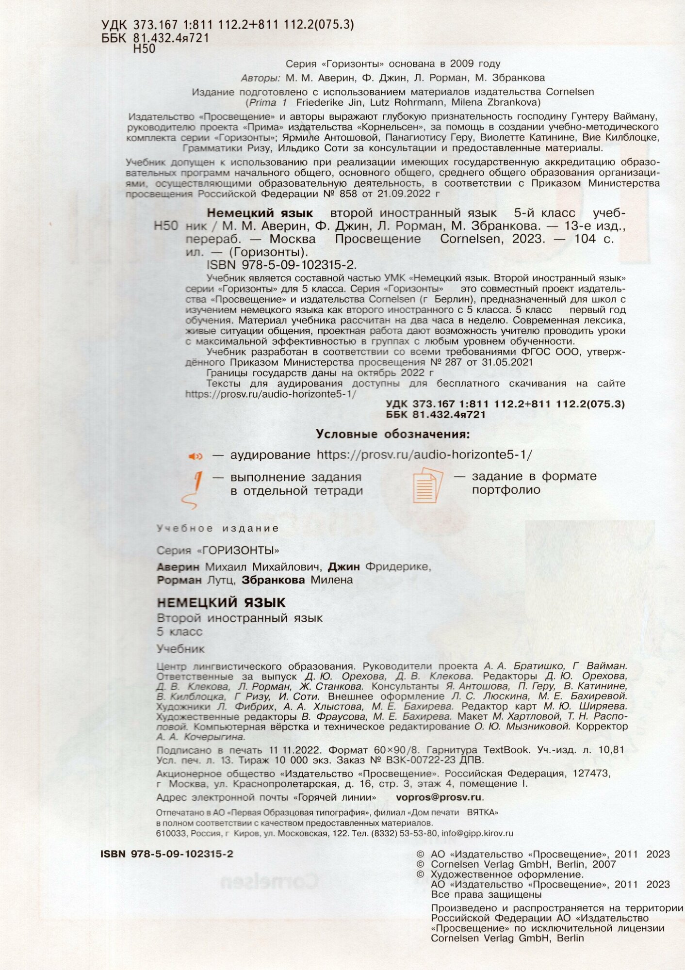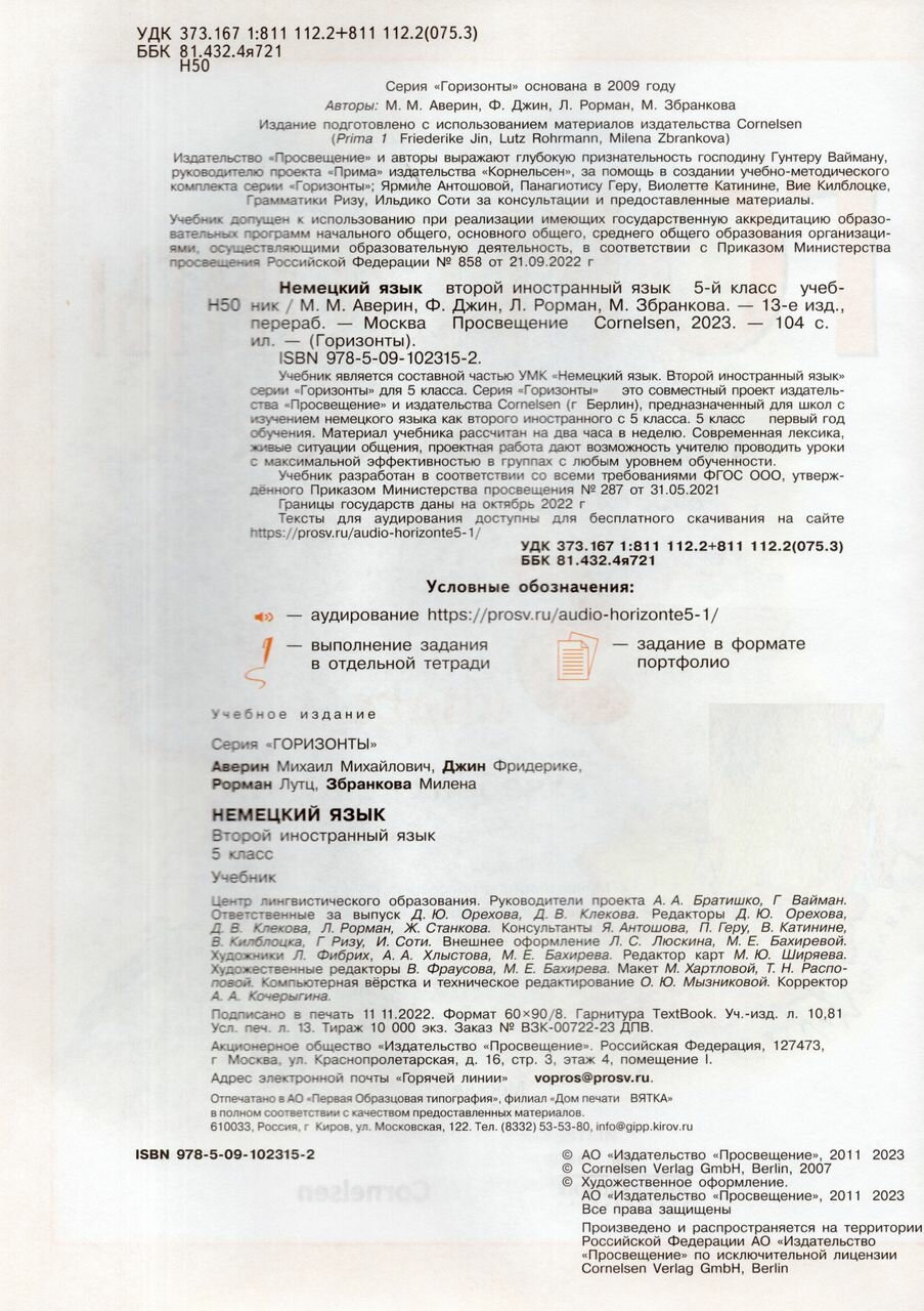 Deutsch. Horizonte. Lehrbuch 5 / Немецкий язык. Второй иностранный язык. 5 класс. Учебник (Михаил Михайлович Аверин, Фридерике Джин, Лутц Рорман); Просвещение, 2024