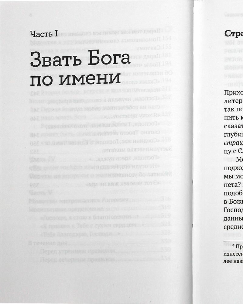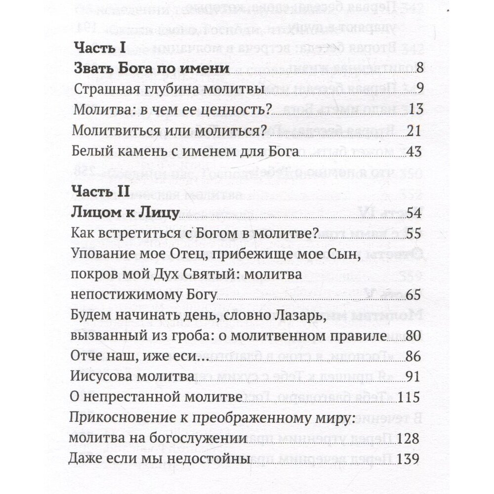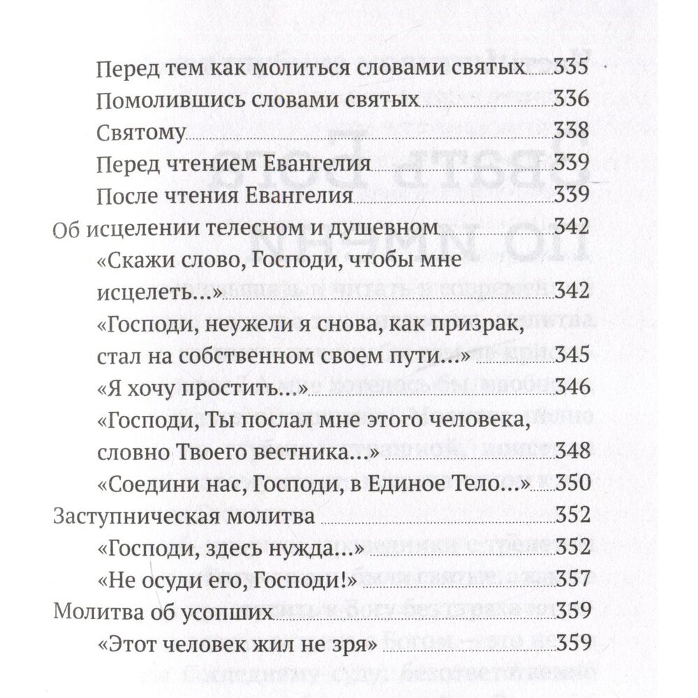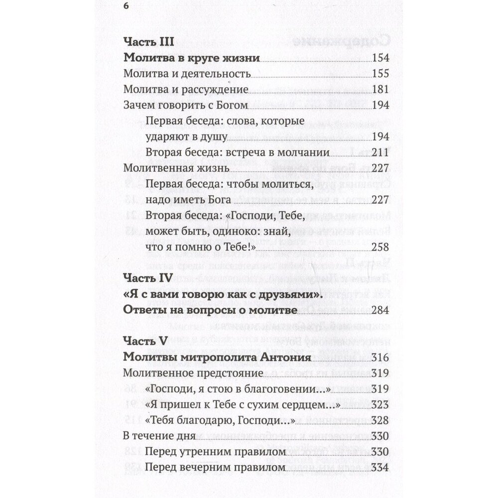 Замечательный сборник, включающий в себя записи проповедей, бесед, ответов на вопросы митрополита Антония - каждый текст снабжён справкой, когда и где были сказаны эти слова (а было это в разных странах и в разное время). В конце книги - собрание молитв Владыки как прекрасный пример того, о чём он говорит выше. Мне очень понравилась эта книга, она заставляет обратить серьёзное внимание на всё, что касается молитвенной жизни. Владыка Антоний ломает множество стереотипов и призывает к максимальной честности с Богом и с самим собой в отношении молитвы. Уровень Владыки недостижим - но этот великий человек даёт все подсказки, какие только может, чтобы помочь найти верный путь в молитвенной жизни.