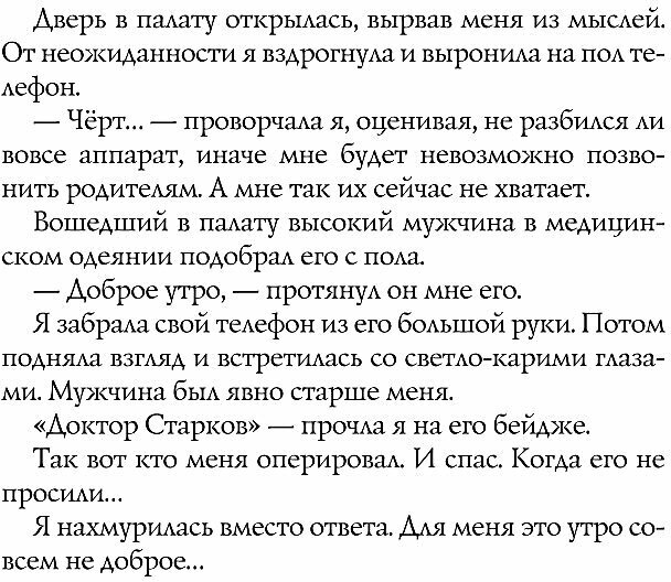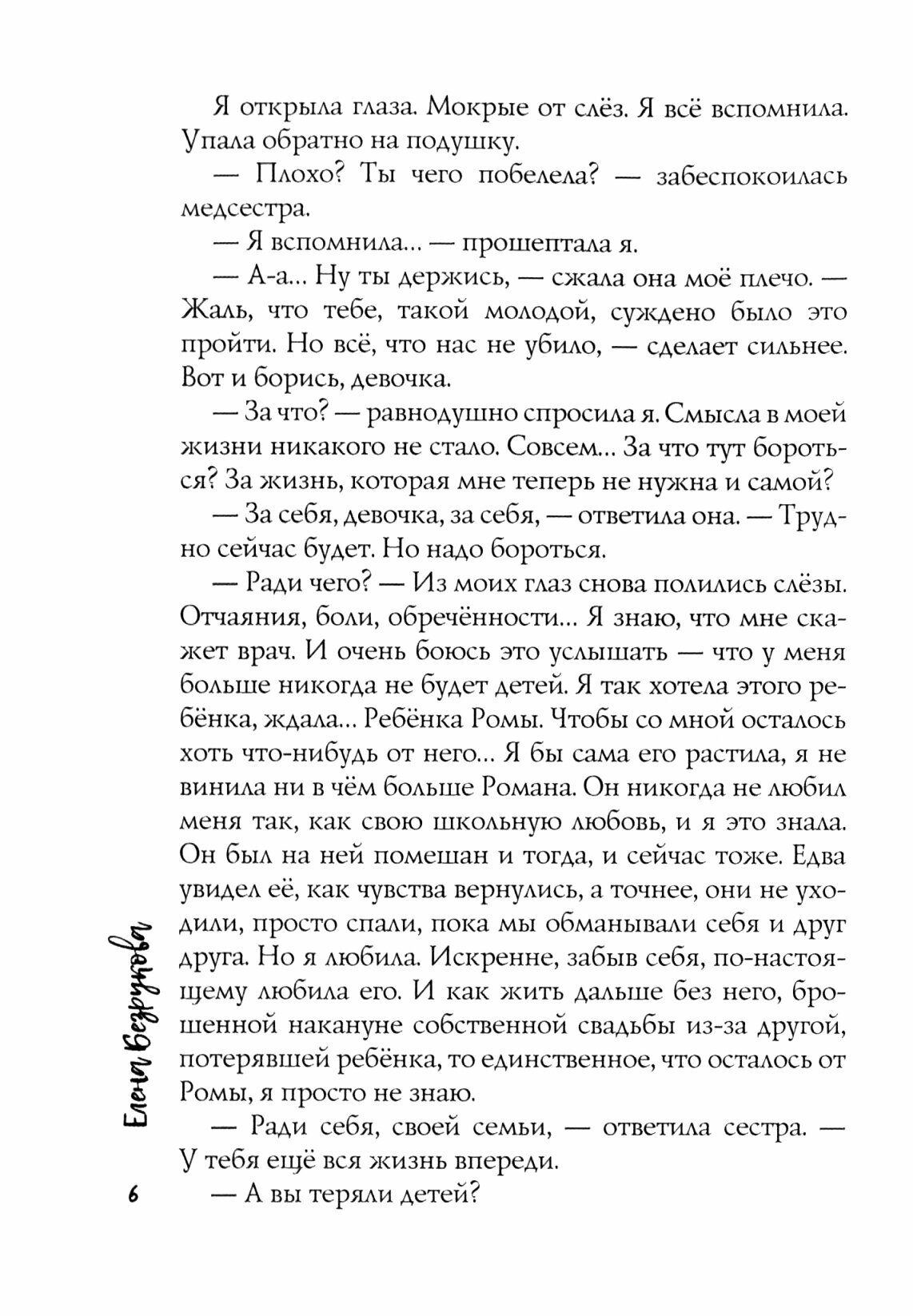 Прочитала ее на одном дыхании, как и все книги этого цикла. Очень жизненно и эмоционально. Остались приятные воспоминания после прочтения этой замечательной истории!!! Начиналось все не так радужно. Наверное, ещё не было такой книги, где героиня с самого начала перенесла такую боль утраты. Ужасно, что Ладе пришлось заново собирать себя по кусочкам, начать снова жить. Хорошо, что в какой-то момент жизни, когда кажется, что все плохо и из непроглядной тьмы не вылезти, появляется тот самый человек, который протянет тебе руку помощи и вытащит на поверхность!!! Советую к прочтению!